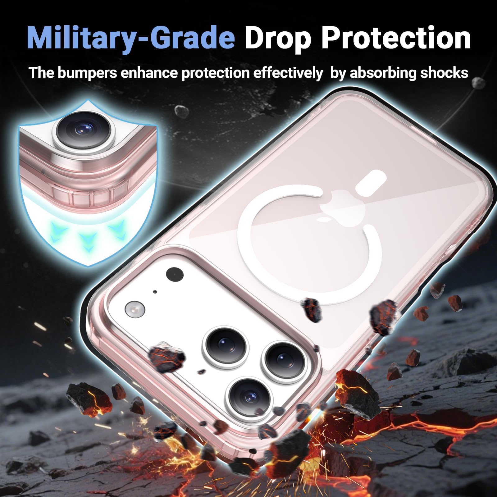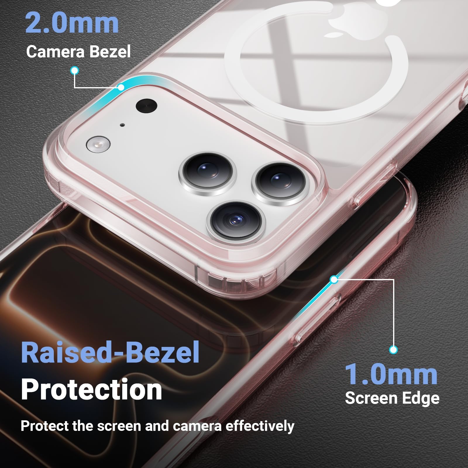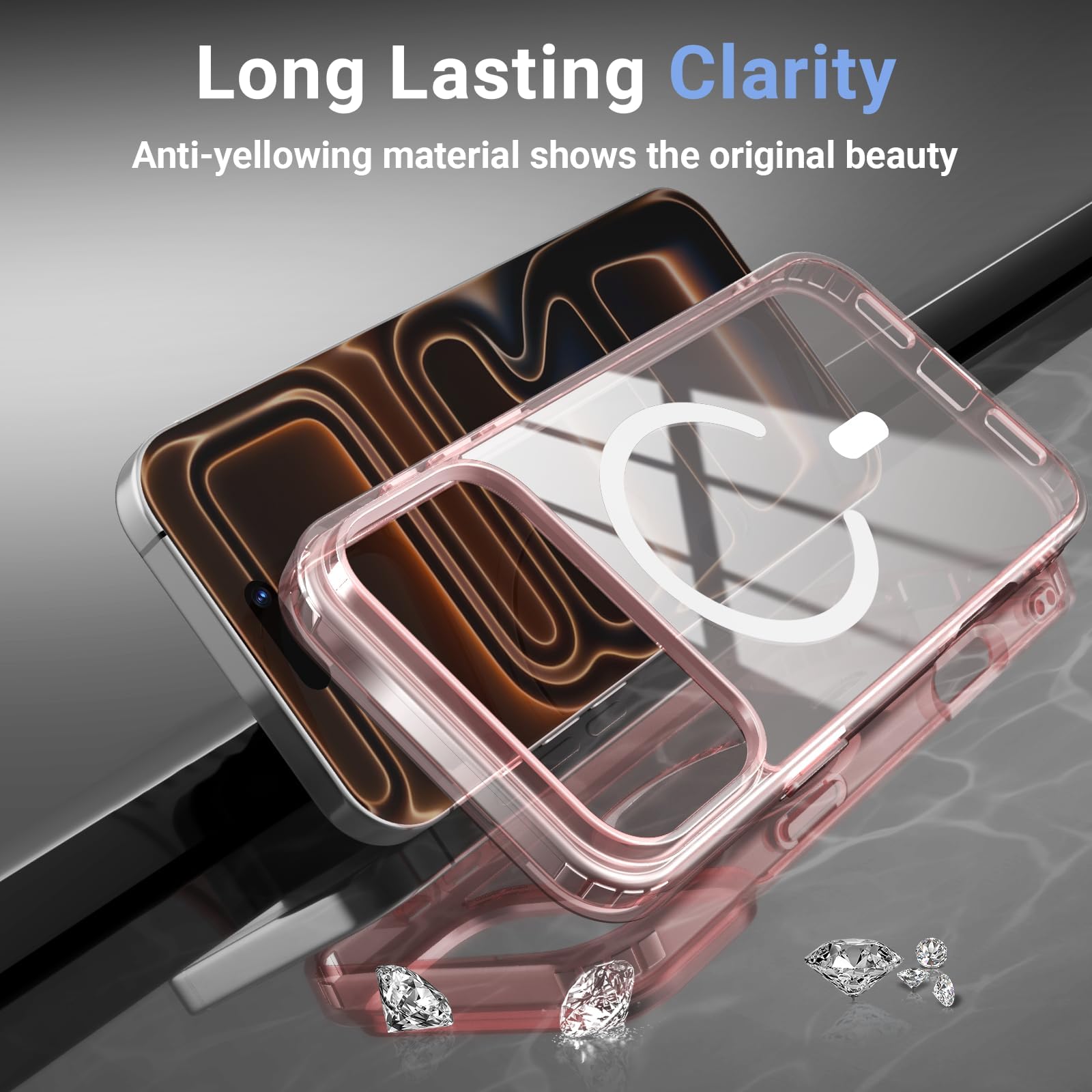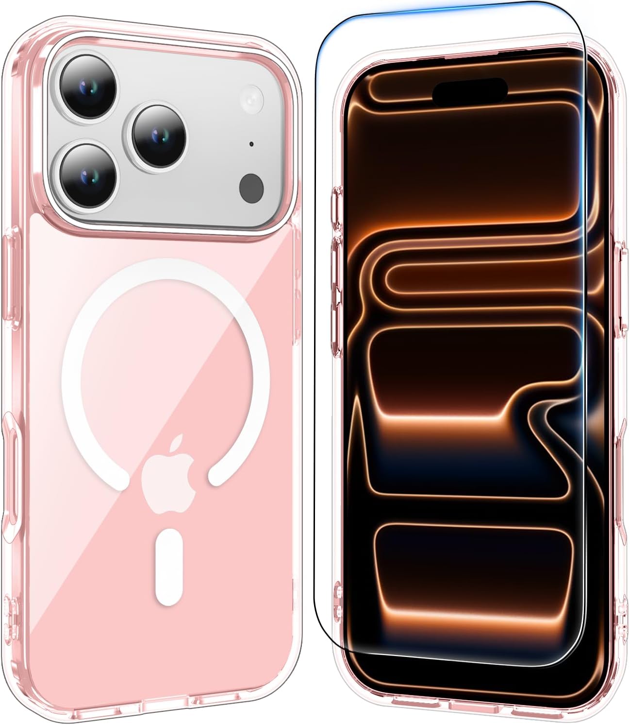 כיסוי Temdan לאייפון 17 פרו שקוף עם מגן מסך, תואם ל-Magsafe, נגד הצהבה, הגנה ברמה צבאית, כיסוי טלפון מגנטי דק ועמיד בפני זעזועים, ורוד