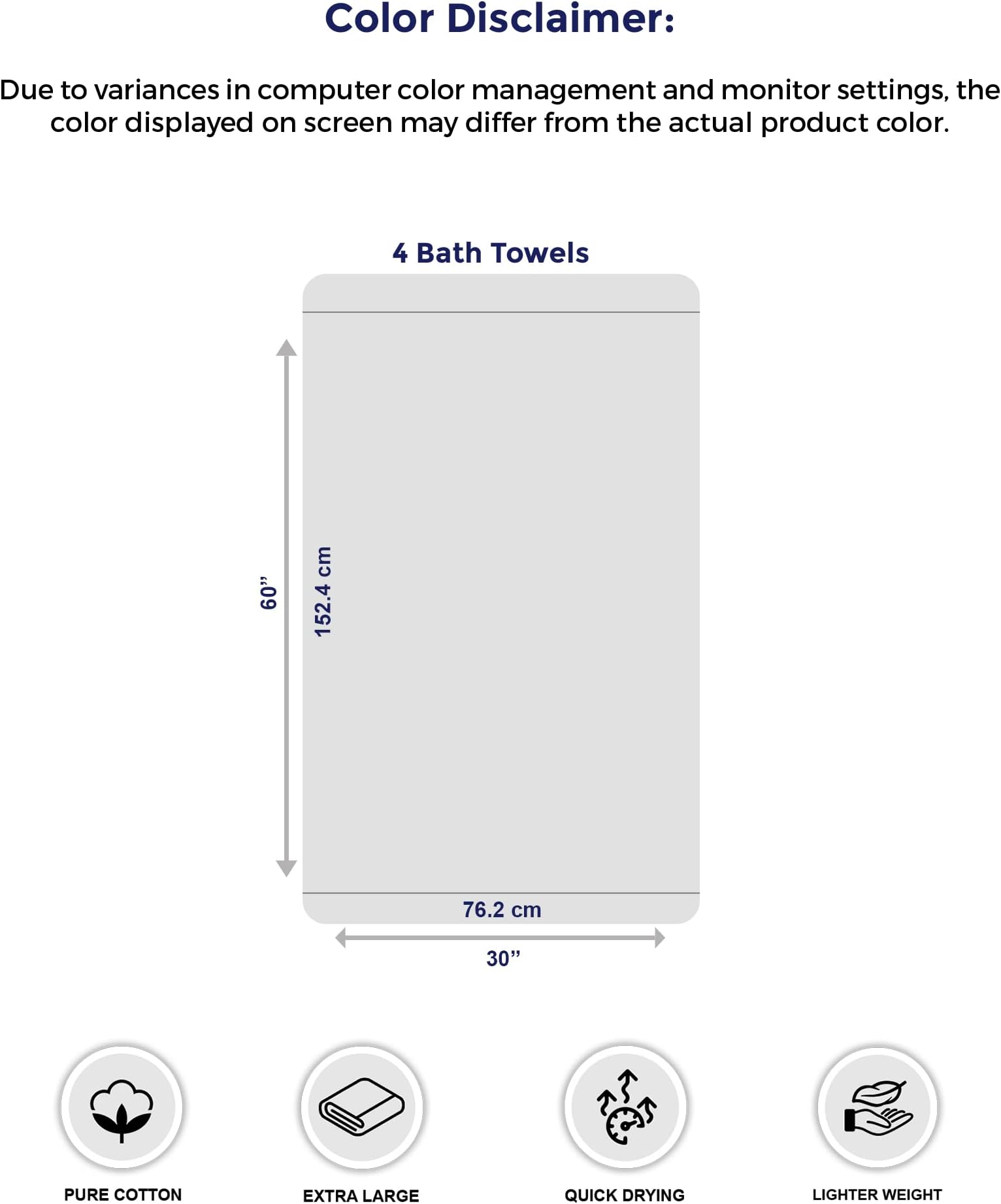 - גדול יותר: חבילה זו מכילה ארבע מגבות אמבטיה בגודל נדיב, כל אחת בגודל 30 x 60 אינץ', מושלמות לעטיפה עצמית.