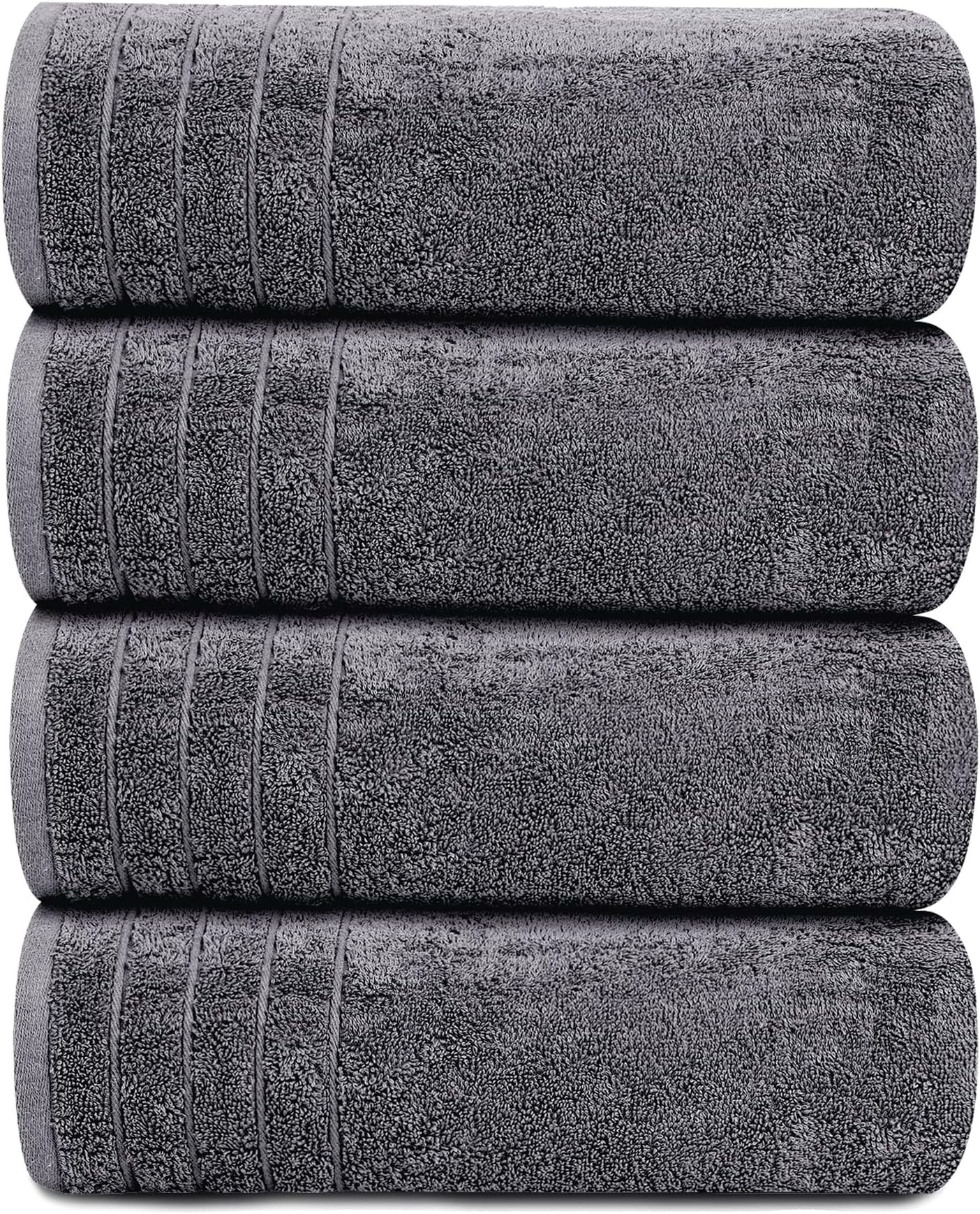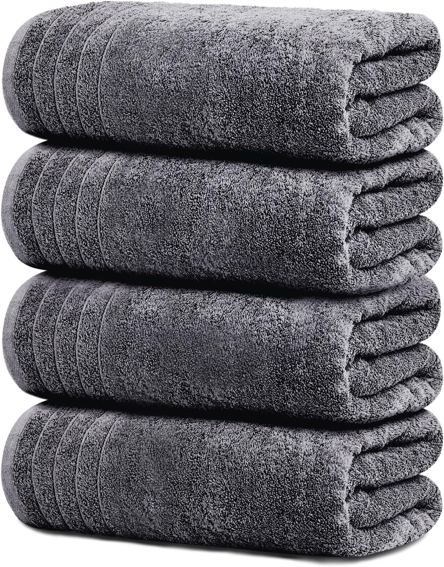 חבילה של 4 מגבות אמבטיה גדולות במיוחד של Tens Towels, 30x60 אינץ', 100% כותנה, גדולות וקלות יותר, מתייבשות מהר יותר, רכות וסופגות במיוחד, מושלמות לחדר האמבטיה, אפור כהה