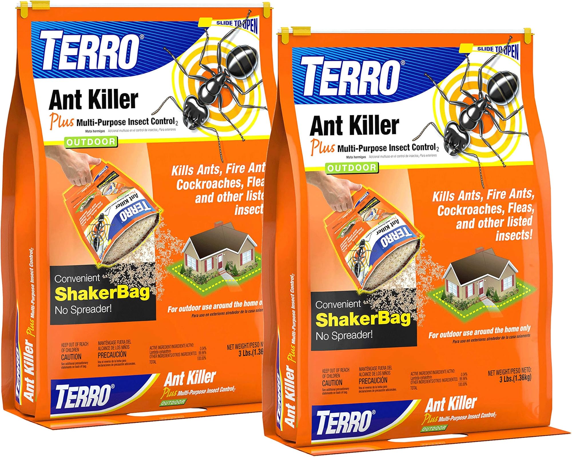 צרו מחסום נגד נמלים, נמלי אש, ג'וקים, פרעושים, פאות אוזניים ועוד עם TERRO Ant Killer Plus. טיפול מהיר זה פועל תוך 24 שעות כדי לשמור על ביתכם נקי ממזיקים עקשניים ביותר, תוך שהוא מציע גם שליטה שיורית. ליעילות מוגברת, ניתן למרוח מוצר זה כטיפול היקפי סביב יסודות הבית, לפזר אותו על מדשאות, או להשתמש בו כטיפול נקודתי על גבעות נמלים ותלוליות נמלי אש. TERRO T901SR Ant Killer Plus ארוז בשקית נעימה הניתנת לסגירה חוזרת כדי לאפשר מריחה קלה. פשוט פתחו את החלק העליון, אחזו בידית הממוקמת בתחתית השקית והתחילו לפזר את הגרגירים. אין צורך להשתמש במפזר! כדי למרוח כטיפול היקפי, צרו רצועה של גרגירים באורך 0.9 עד 3 מטרים לאורך יסודות הבית. לטיפול בגבעות נמלים (למעט נמלי אש), מרחו 1 עד 2 כפיות על גרגירים מעל וסביב גבעת הנמלים. הקפידו להשקות את הגרגירים קלות מיד לאחר היישום. כדי לשלוט בנמלי אש, מרחו חצי כוס גרגירים מעל, ובמרחק של 0.6 מטרים סביב כל תלולית. לאחר המריחה, יש להשקות בעדינות את המוצר עם לפחות 3.5 ליטר מים לכל אזור תלולית. יש להימנע משימוש בצינור לחץ גבוה, אשר עלול להפריע לנמלים ולגרום לנדידה.