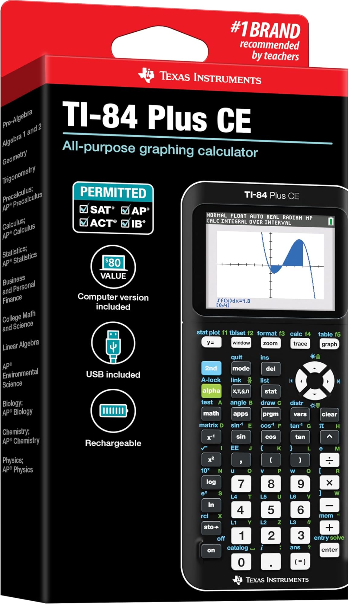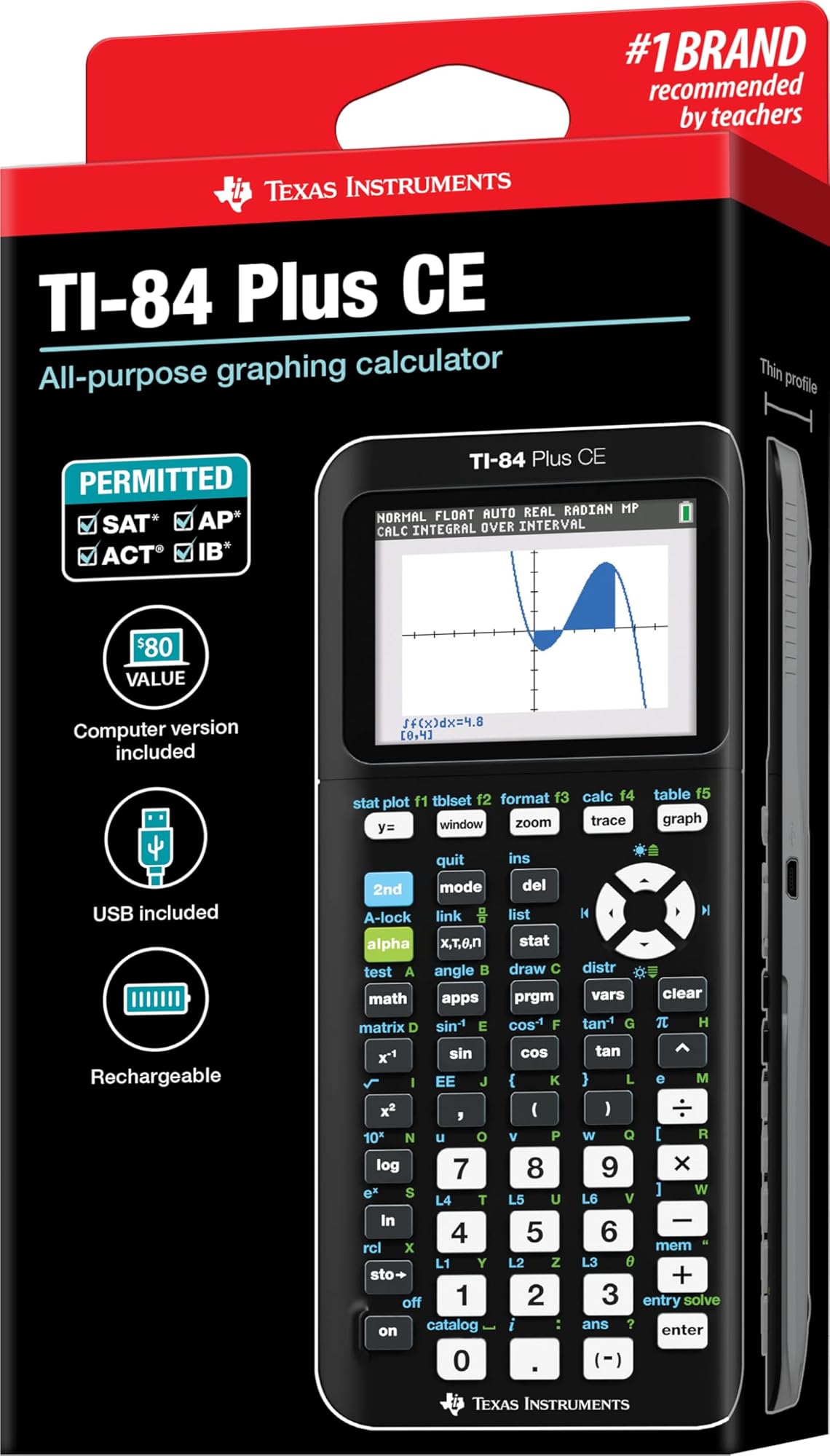 מחשבון גרפים צבעוני TI-84 Plus CE מדגם Texas Instruments, שחור