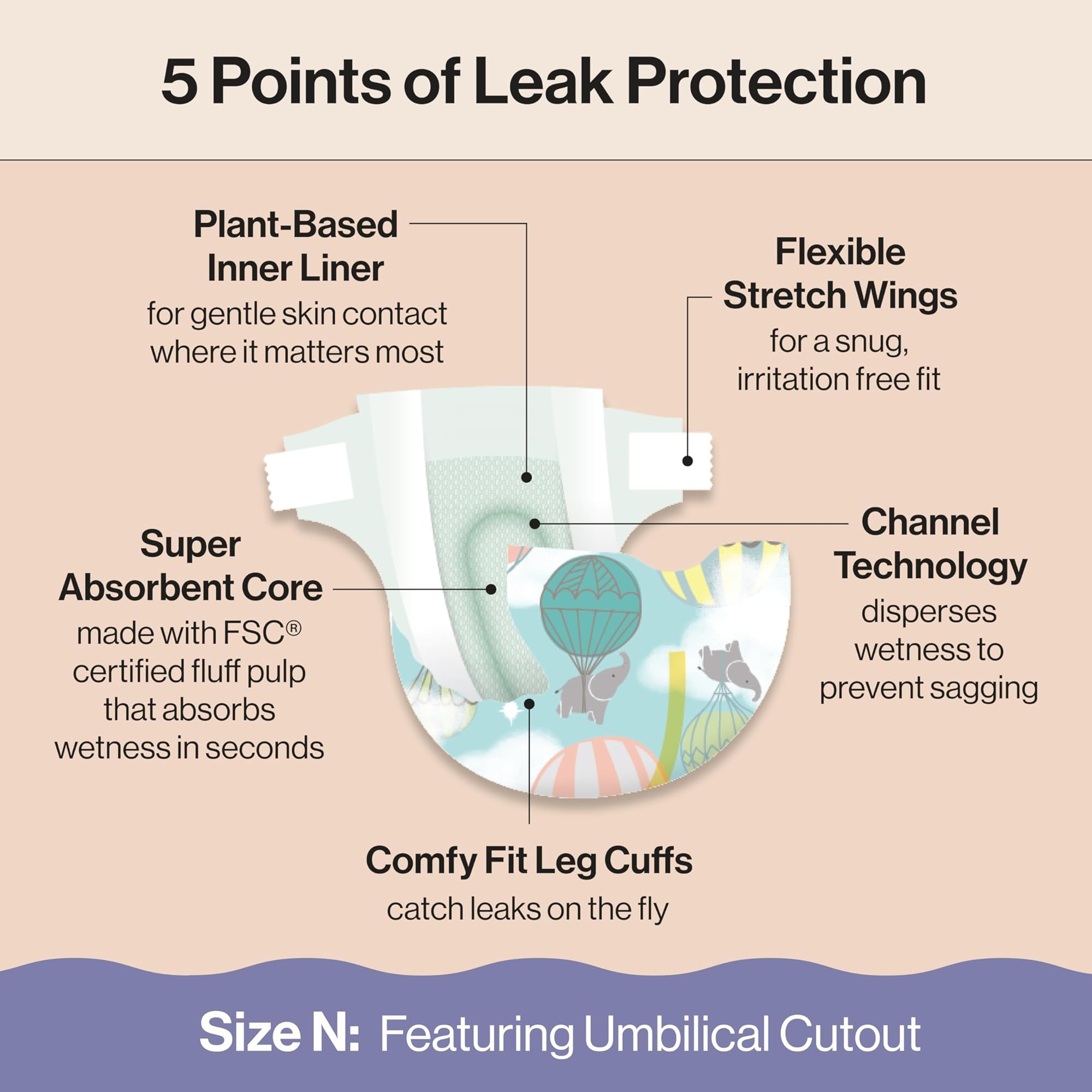 - היפואלרגני: החיתול הרך ביותר שלנו עד כה הוא היפואלרגני, ללא בישום, ועשוי עם בטנה פנימית מבוססת צמחים למגע עדין עם העור היכן שהוא הכי חשוב. עשוי מחומרים רכים ובטוחים להגנה על עורו העדין של התינוק.