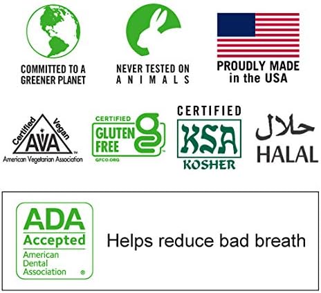 - כל נגיעה של טעם המנטה הקפואה הממריץ שלו נלחמת בריח רע מהפה והוא בעל תו תקן טבעוני, ללא גלוטן, חלאל וכשר; והוא מגיע באריזת פלסטיק ניתנת למחזור
