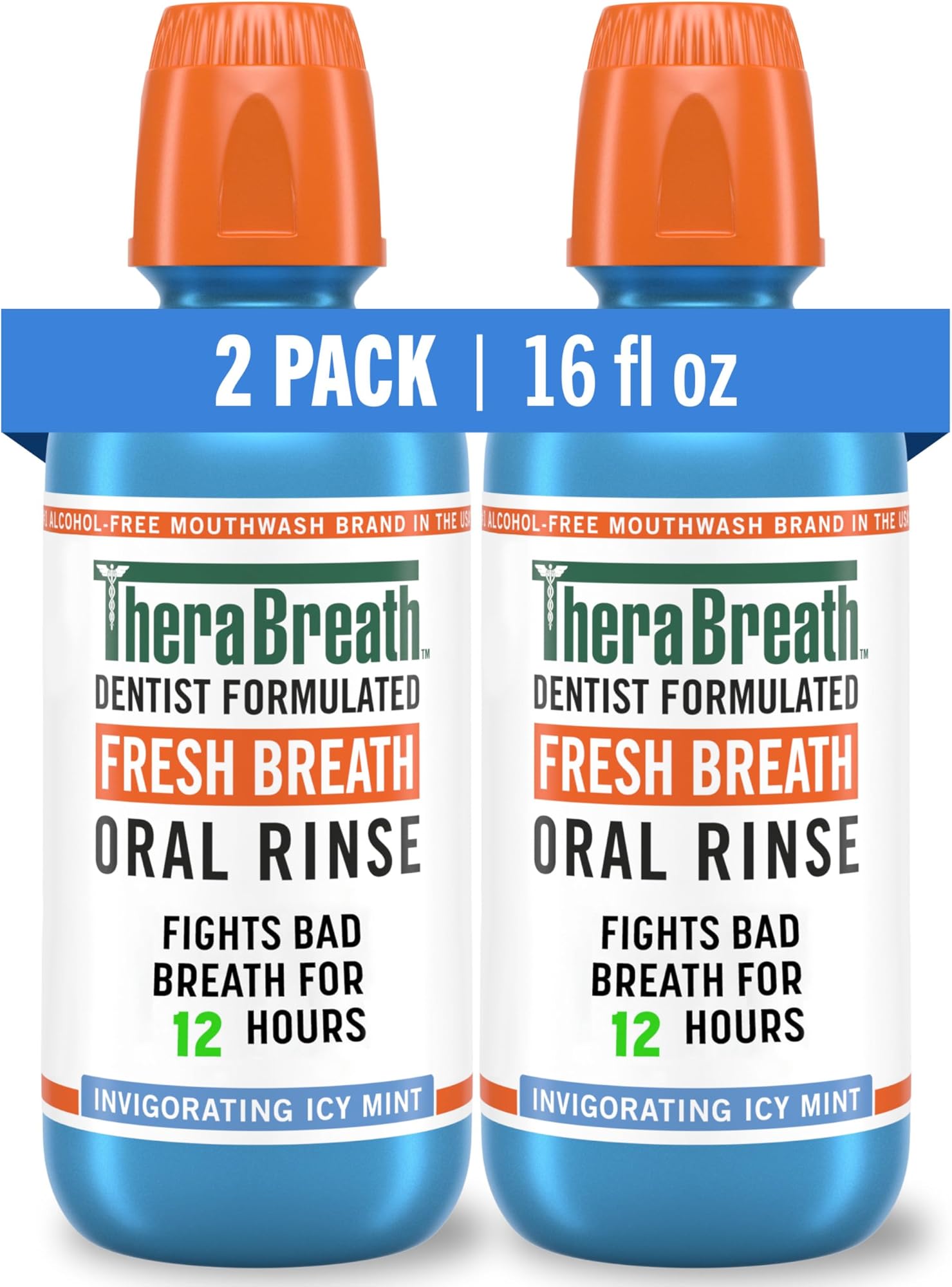 מי פה TheraBreath Fresh Breath, בטעם מנטה קפואה, ללא אלכוהול, 16 אונקיות נוזל (חבילה של 2)
