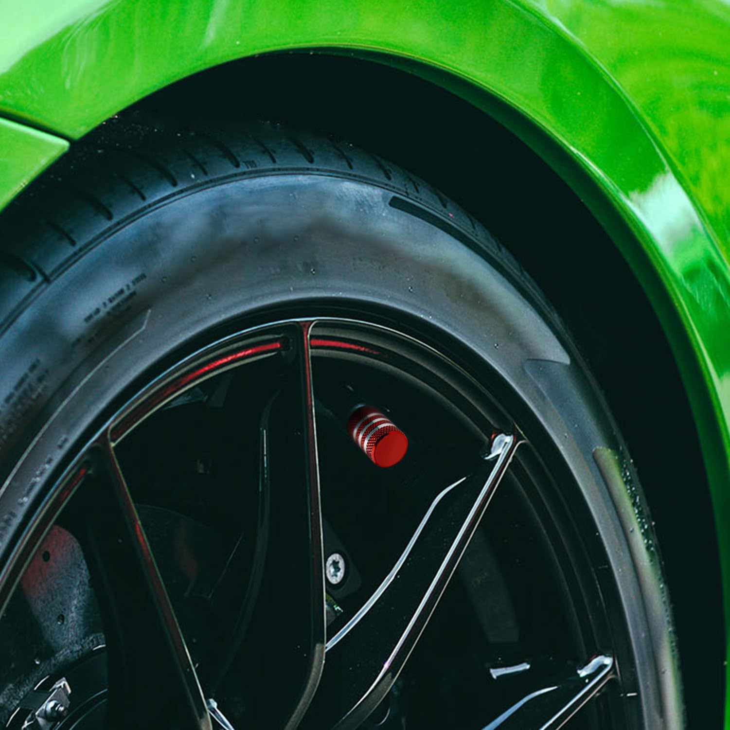 כיסוי מכסה לשסתום צמיגים - (חבילה של 5) מכסי אוויר לצמיגים מתכת עם בטנת פלסטיק עמיד בפני קורוזיה אטום לדליפות לרכב משאית אופנוע SUV ואופנוע אדום