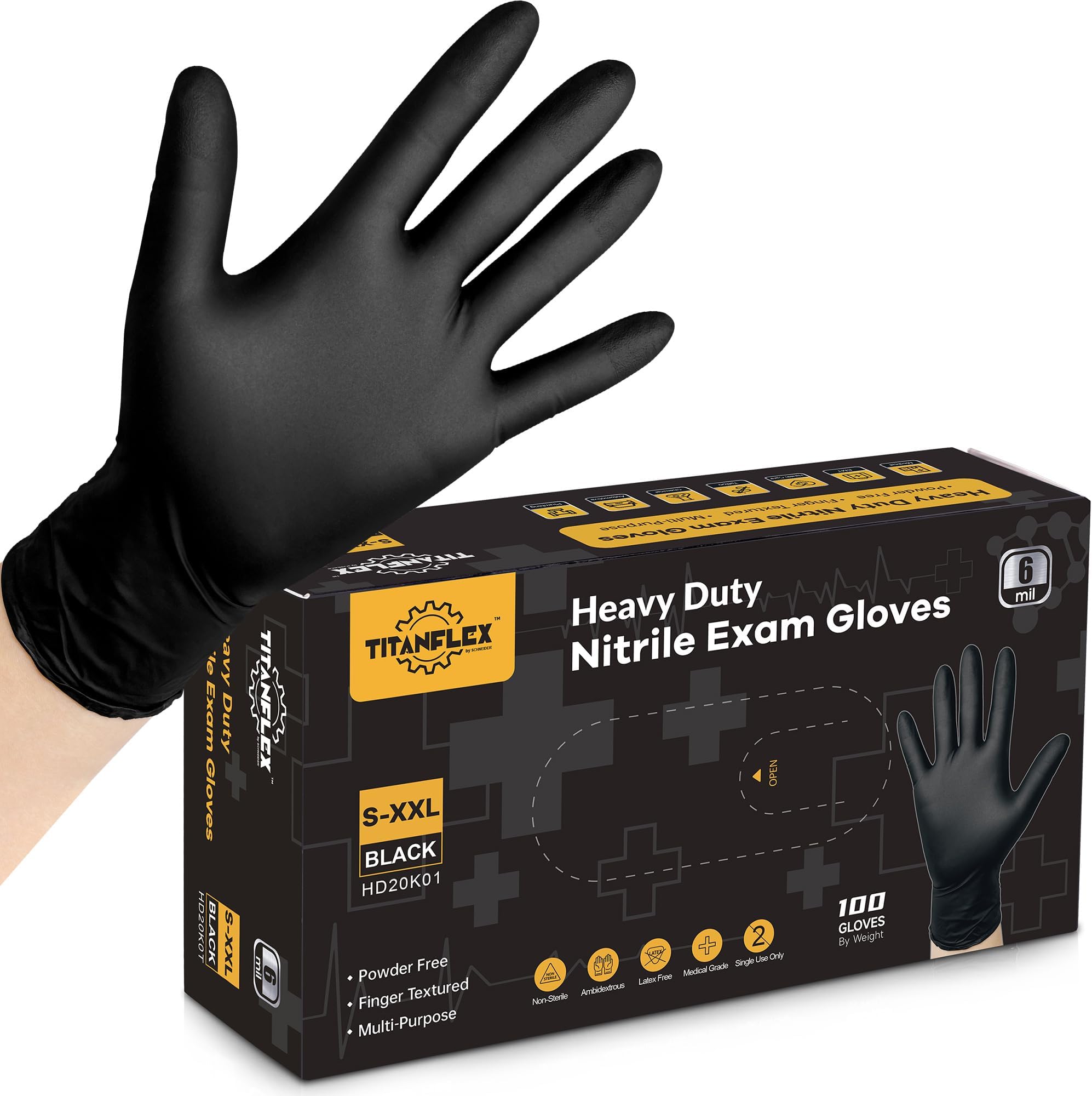 כפפות ניטריל חד פעמיות לבדיקה של TitanFlex - 6 מיל, שחורות, קופסה גדולה של 100 יחידות, עמידות בפני נזק, ללא לטקס, בטוחות לבישול והכנת מזון