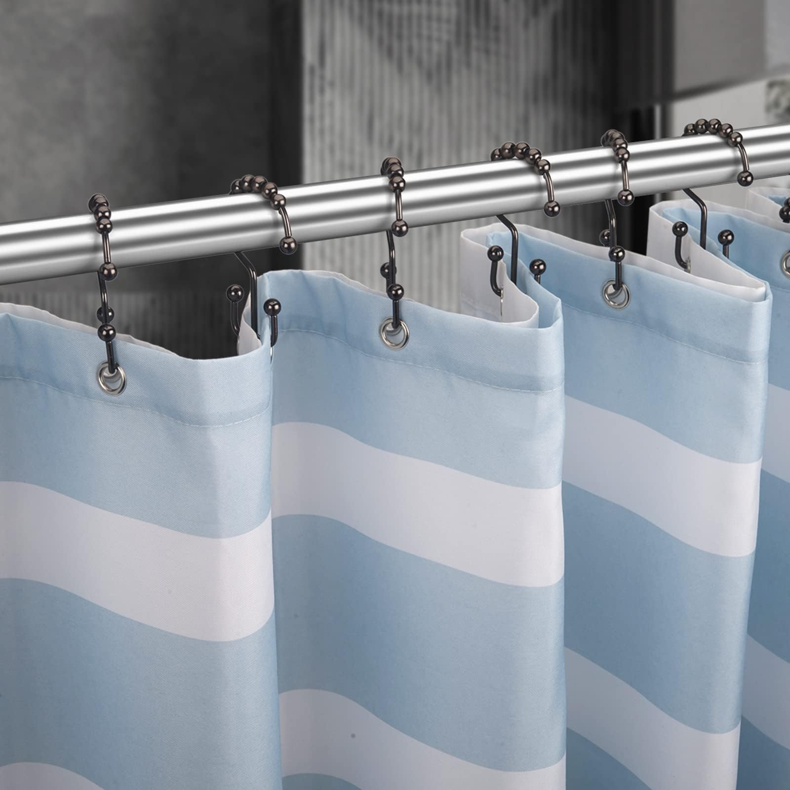 - עיצוב ווים כפולים - ווי המקלחת עם גלישה כפולה חזקים מספיק כדי להחזיק את וילון המקלחת ואת ריפוד המקלחת.