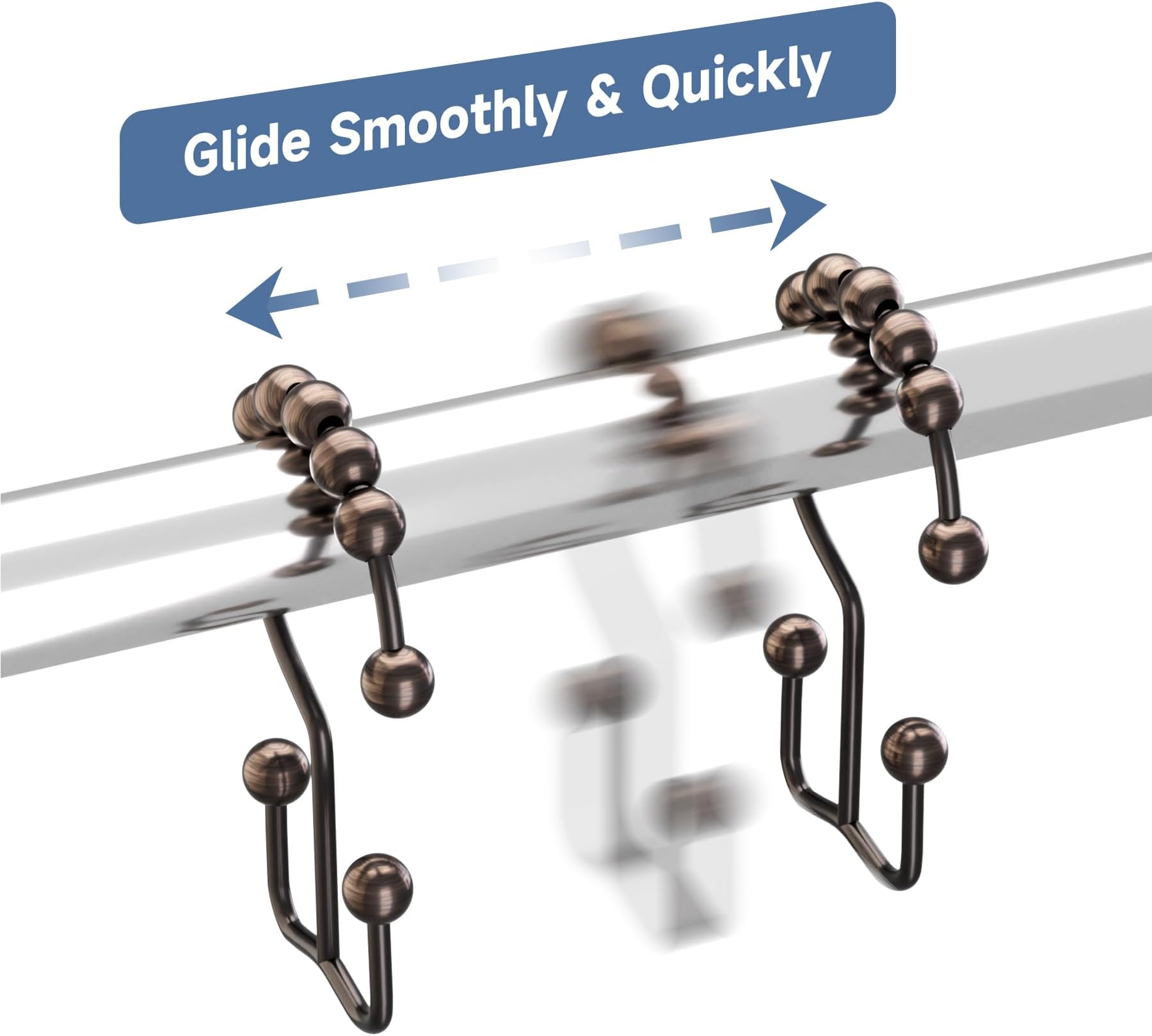 - גלישה חלקה - כדורי גלילה כדוריים מהונדסים של ווים לוילון מקלחת יכולים לגלוש בצורה חלקה ומהירה על פני מוט המקלחת.
