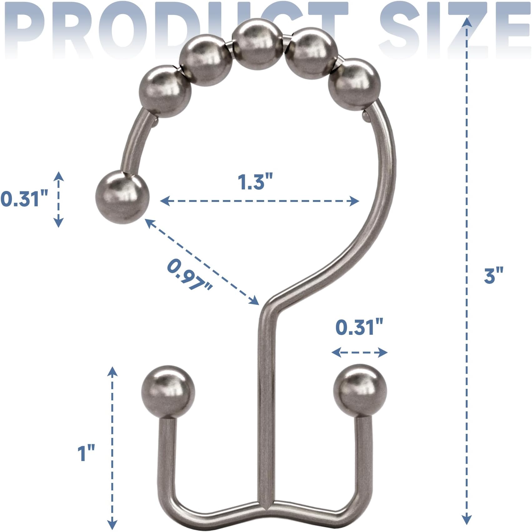 - עיצוב ווים כפולים - ווי המקלחת עם גלישה כפולה חזקים מספיק כדי להחזיק את וילון המקלחת ואת ריפוד המקלחת.