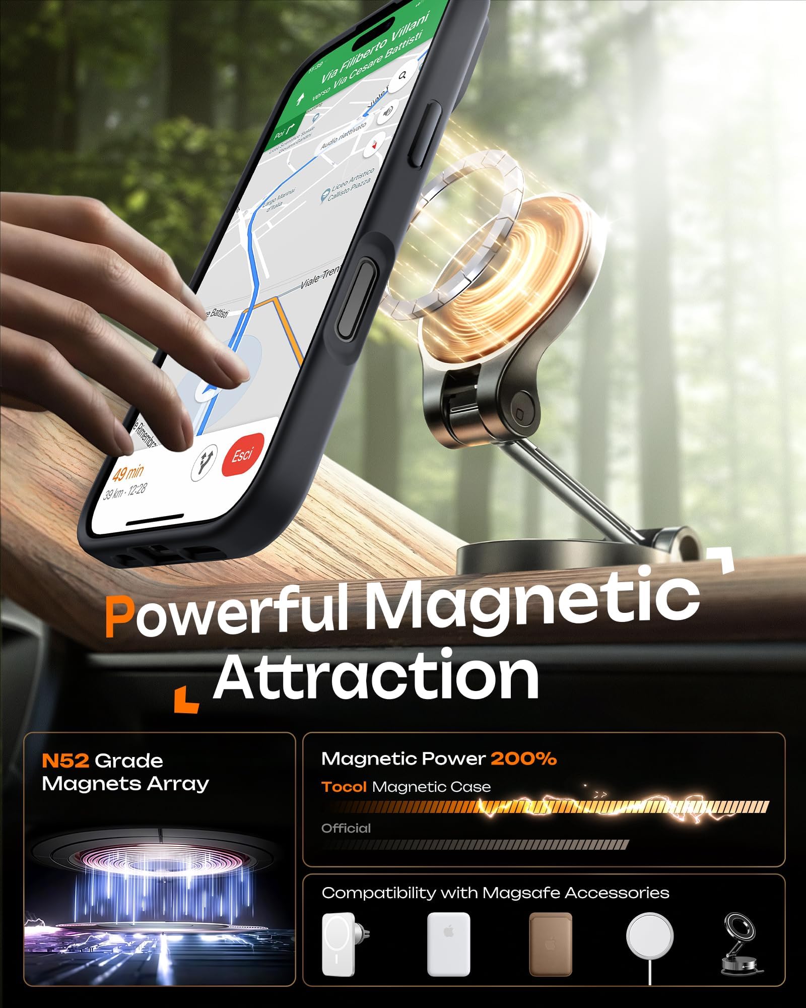 - טבעת מגנטית מובנית: רק לכיסוי אייפון 17 בגודל 6.3 אינץ'. טבעת מגנטית מובנית שלעולם לא נופלת. עוצמה חזקה במיוחד של 18N, מושלמת לכל אביזרי ה-Mag שלך. היא מחזיקה מעמד היטב על תושבת הרכב של ה-Mag שלך, אפילו מעל מהמורות חזקות.
