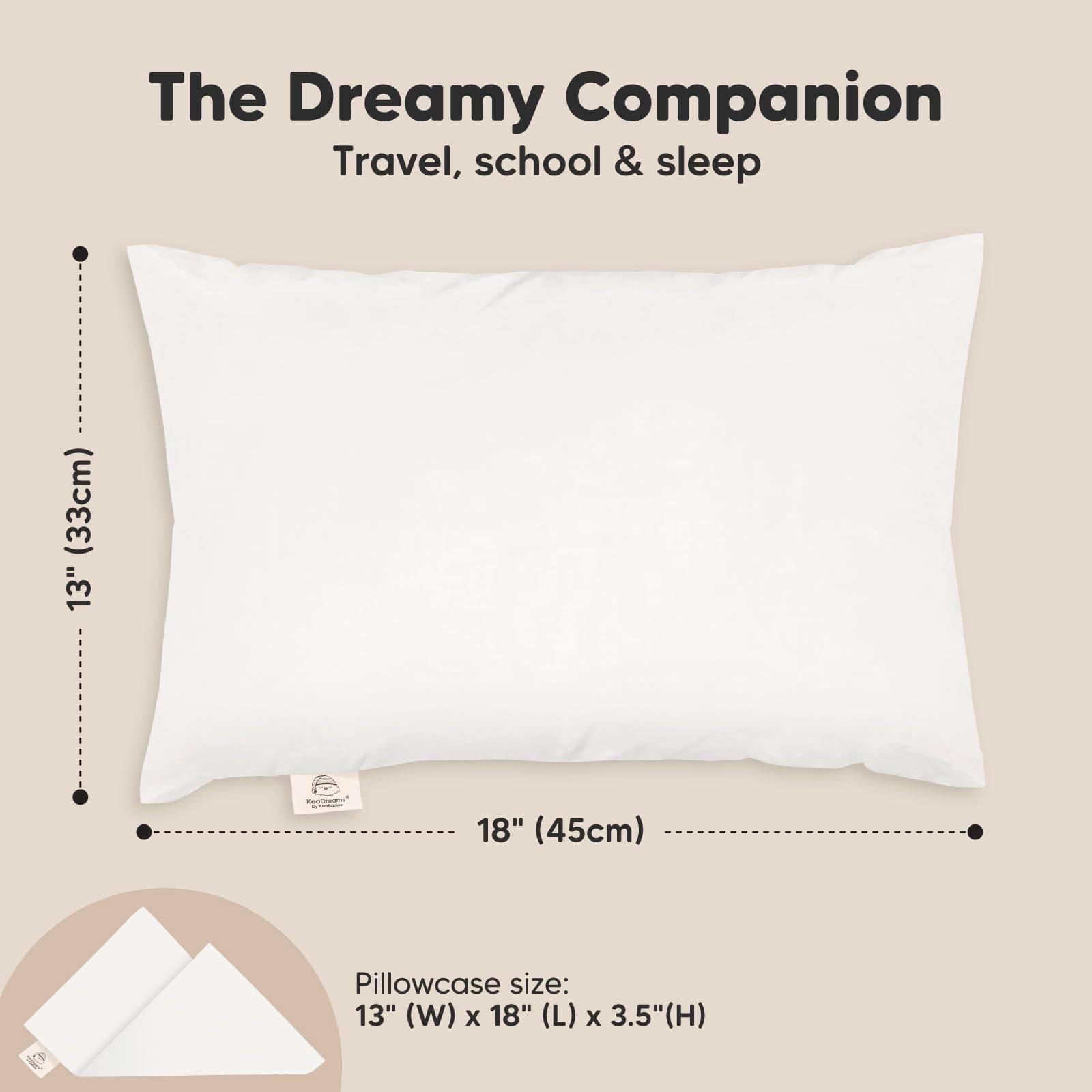 כרית לפעוטות עם ציפית - 13x18 כריות מיטת נסיעות לילדים הקטנים והחלומיים שלי לשינה, ציפית קטנה מכותנה אורגנית, רכה ונושמת, ניתן לכביסה במכונה, פעוטות בגילאי 2-5 (לבן רך)