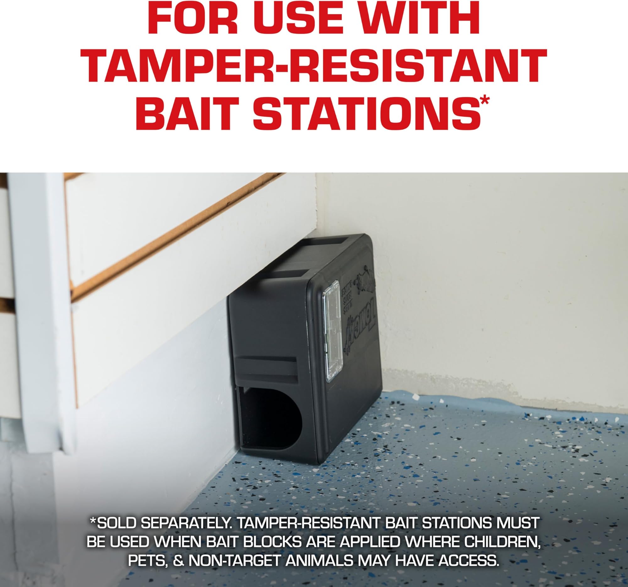 - דלי זה של Tomcat עם Bromethalin Bait Chunx במשקל 180 גרם מלא בבלוקים של פיתיון במשקל 30 גרם לשימוש עם תחנות פיתיון (נמכרות בנפרד) או לפי הוראות התווית.