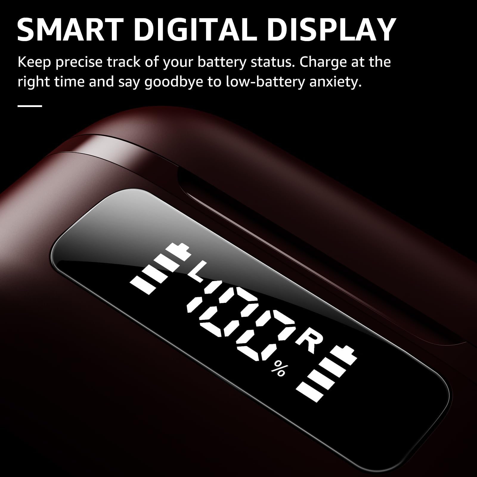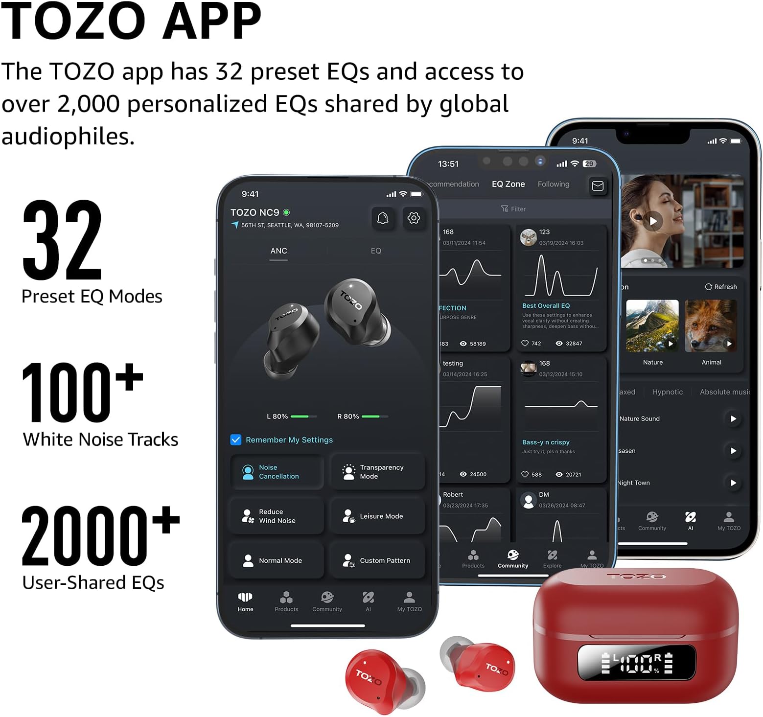 אוזניות אלחוטיות היברידיות TOZO NC9 עם ביטול רעשים אקטיבי, 6 מיקרופונים ENC Clear Call, עמידות למים IPX8, אוזניות Bluetooth 5.3 בתוך האוזן, אטמי אוזניים סטריאו בס, 59 שעות נגינה עם תצוגת LED, 32 איקוולייזרים דרך אפליקציה