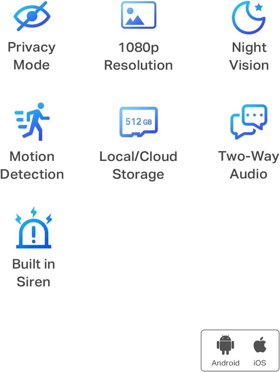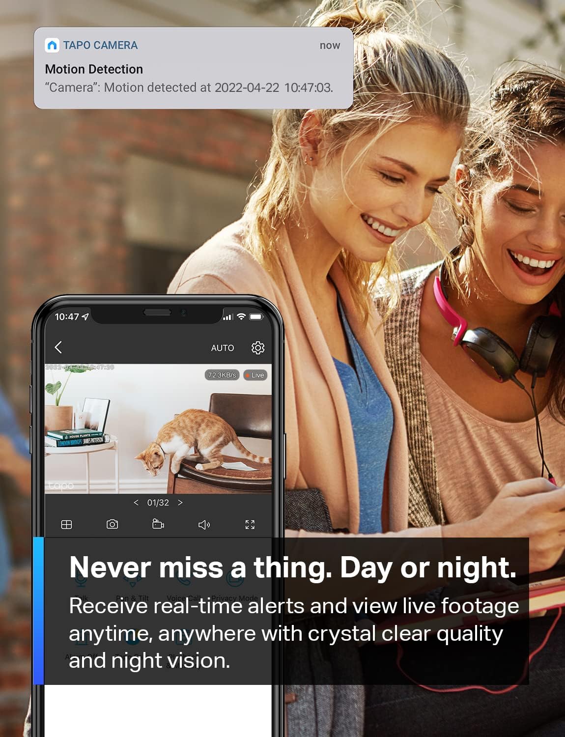 הגן על ביתך עם מצלמת האבטחה החכמה Tapo C100 עם Wi-Fi. היא כוללת וידאו HD 1080P צלול כבדולח, והיא לוכדת כל פרט בתוך הבית. קבל התראות מיידיות כאשר מזוהים תנועה, אדם או בכי תינוק ממצלמת התינוק הזו, והכל ללא עלויות נוספות. נטר את ביתך יום ולילה עם ראיית לילה של עד 9 מטרים באמצעות חיישן IR משולב. השתמש בשמע דו-כיווני עם סירנה מובנית כדי להשתמש כמצלמת חיית מחמד עם אפליקציית הטלפון ולהרתיע פולשים. תואם לחלוטין לאמזון אלקסה ולגוגל אסיסטנט, פשוט השתמש בפקודות קוליות כדי לצפות בשידור חי של מצלמת האבטחה הפנימית Tapo ב-Echo Show או ב-Google Chromecast עם מסך. אחסן צילומים ברציפות בכרטיס microSD עד 512 ג'יגה-בייט (לא כלול) או הירשם ל-Tapo Care לאחסון ענן, המציע היסטוריית וידאו של 30 יום ויתרונות נוספים כגון מעקב תנועה וזיהוי בכי תינוק. [לפני רכישת כרטיס microSD, אנא עיין בשאלות הנפוצות באתר האינטרנט של TP-Link כדי להבטיח תאימות למכשיר שלך.]