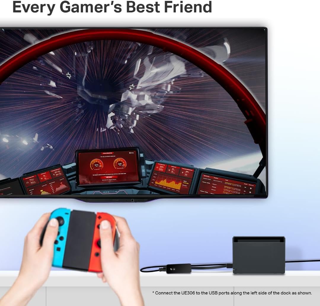 - עם מידות בלבד של 2.8 x 1.0 x 0.6 אינץ', ה-UE306 נכנס בקלות לתיק המחשב הנייד, לתיק הגב או לכיס שלכם. המבנה הקל שלו וחיבור ה-USB המתקפל שלו הופכים אותו למושלם לנסיעות, משחקים ב-Nintendo Switch או התקנה חוטית מהירה בכל מקום.