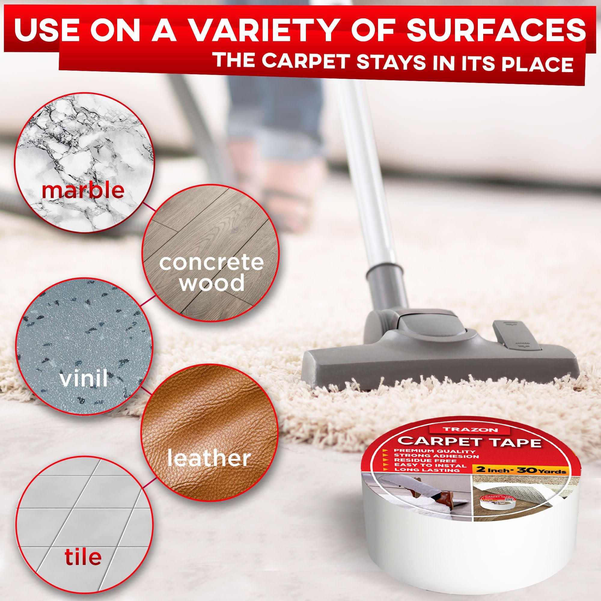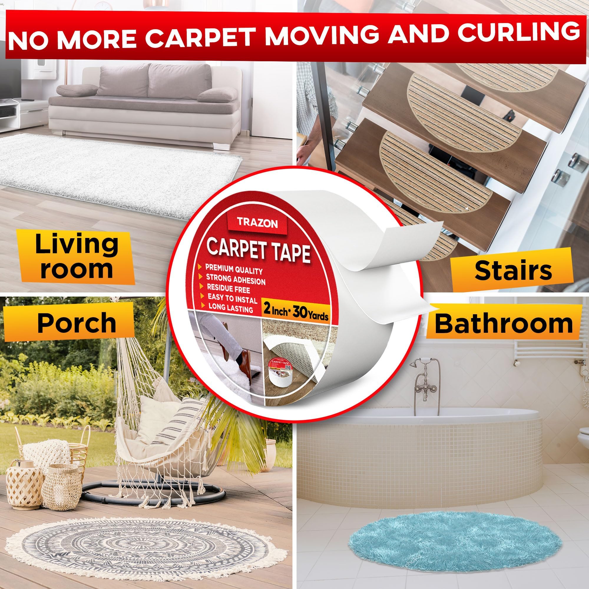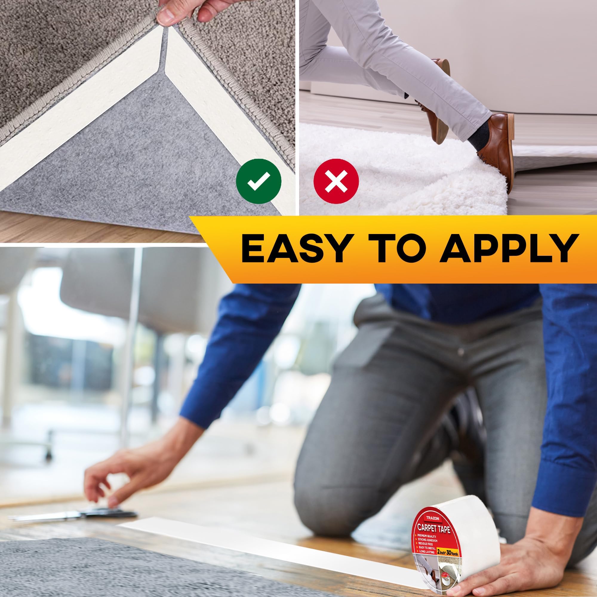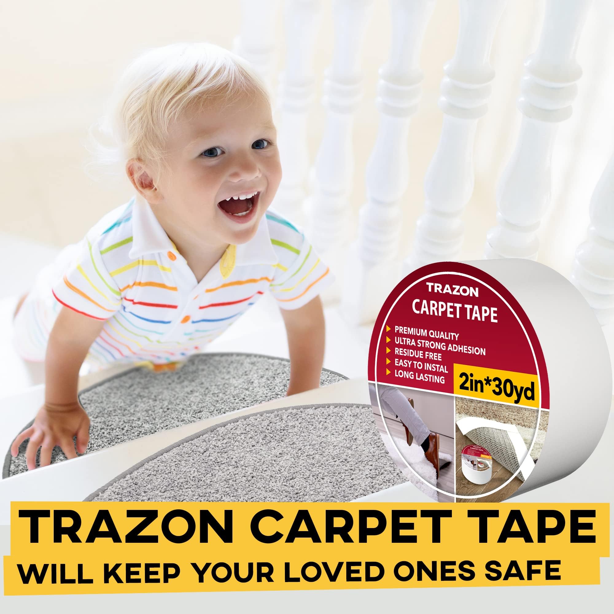 סרט שטיחים דו צדדי Trazon - תופסני שטיחים לרצפות עץ ושטיחים - סרט קשירת שטיחים דביק חזק וניתן להסרה, סרט מדבקות עמיד, ללא שאריות (2 אינץ' / 30 יארד)