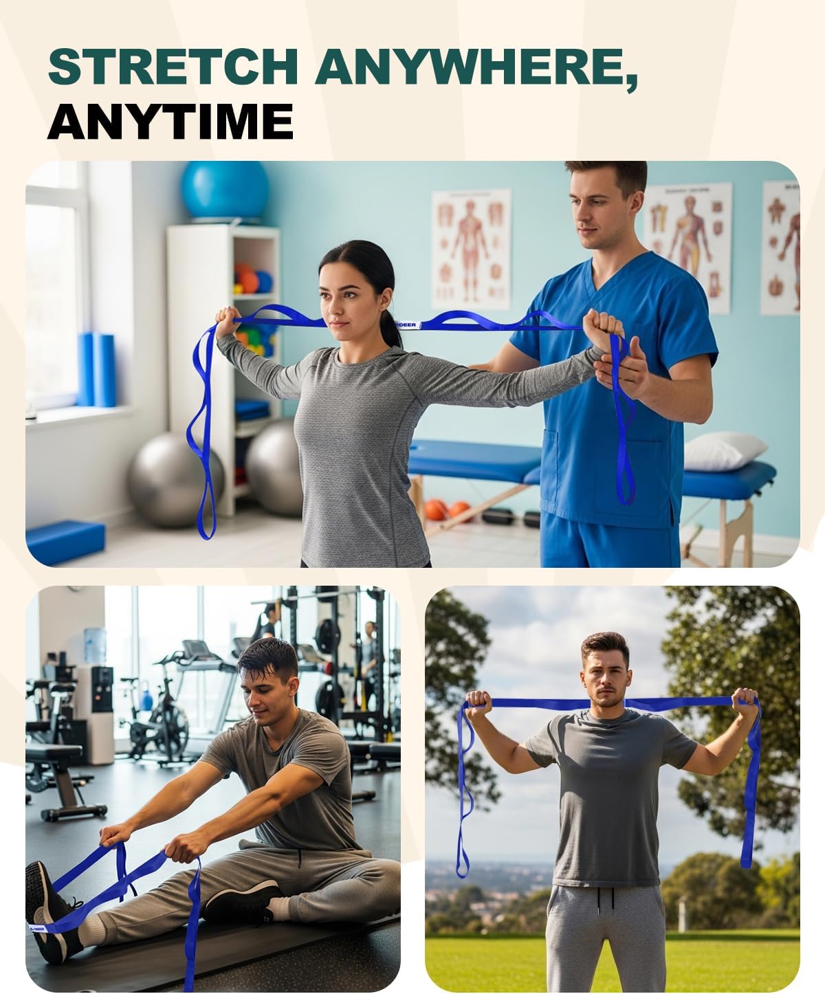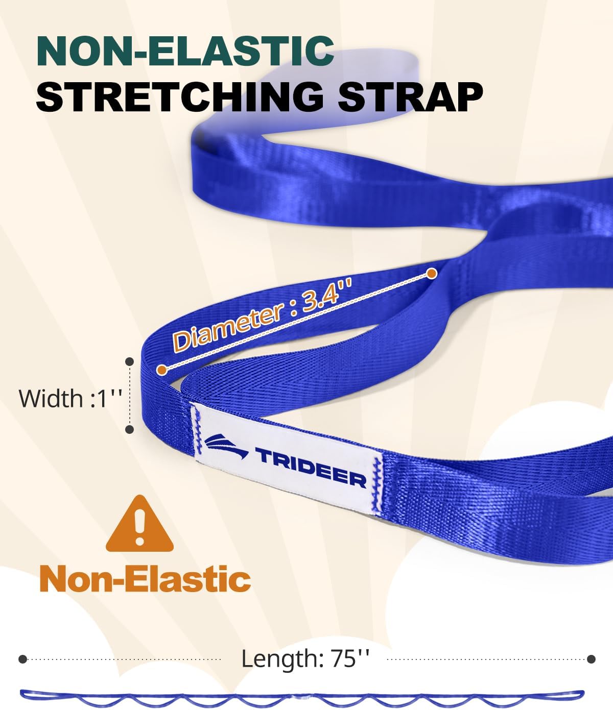 - 【שימושי ונוח】חבל מתיחה זה הוא חבל בעל 10 לולאות בעל מרקם נוח. אורך 75 אינץ' ורוחב 1 אינץ', הוא פותח את הדלת למתיחות למתחילים. גם אם אתם מתחילים גמורים, תמצאו תרגילי מתיחה נגישים וקלים להתקדמות בעזרת רצועת מתיחה זו.