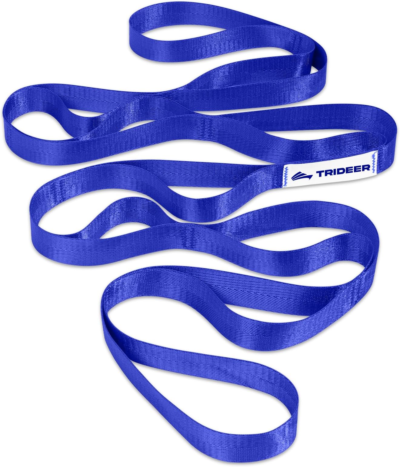 רצועת מתיחה Trideer רצועת יוגה לפיזיותרפיה לאימון ביתי, התעמלות, פילאטיס והתעמלות, 10 לולאות רצועות מתיחה לא אלסטיות עם אריזה אסתטית לנשים וגברים (כחול כהה)