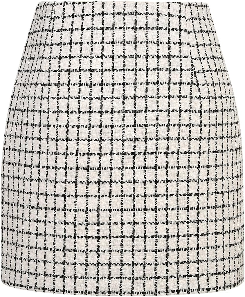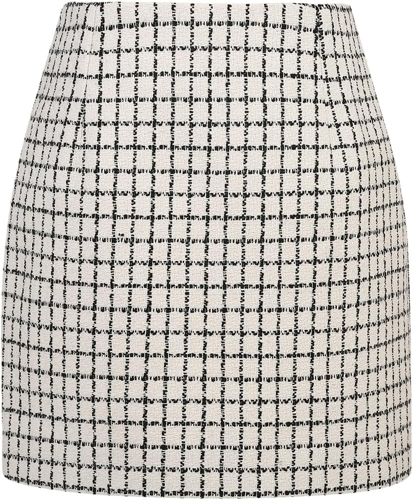 - IDEALSANXUN חצאית מיני משובצת חמודה בגזרת A לנשים, אופנתית ואופנתית