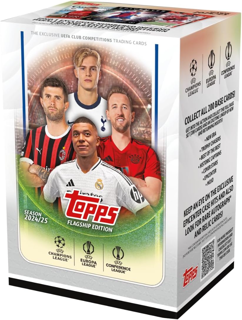 תצורה: 4 קלפים לחבילה. חבילה של 7 קלפים לקופסה. עונת התחביבים של אופ"א חוזרת לעונת 2024/25 בגדול, כאשר מוצר הדגל של תחרויות מועדוני אופ"א של Topps מגיע מוקדם מאי פעם! ותיקי התחרות המובילים והשחקנים החדשים המרגשים ביותר מרכיבים את סט הבסיס של 200 קלפים, הכולל מגוון הקבלות ווריאציות חדשות!