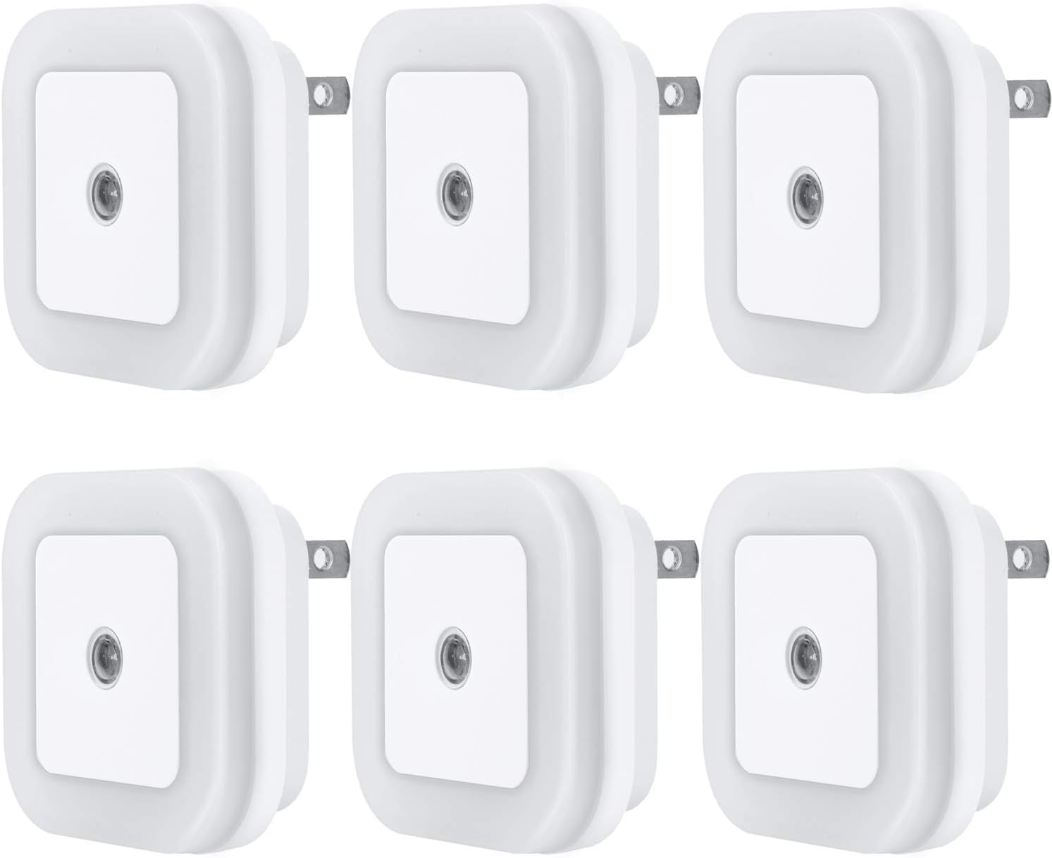 מנורת לילה LED של Uigos עם חיישן חכם מדמדומים עד שחר, לבן לאור יום, חיבור 0.5W, חבילה של 6