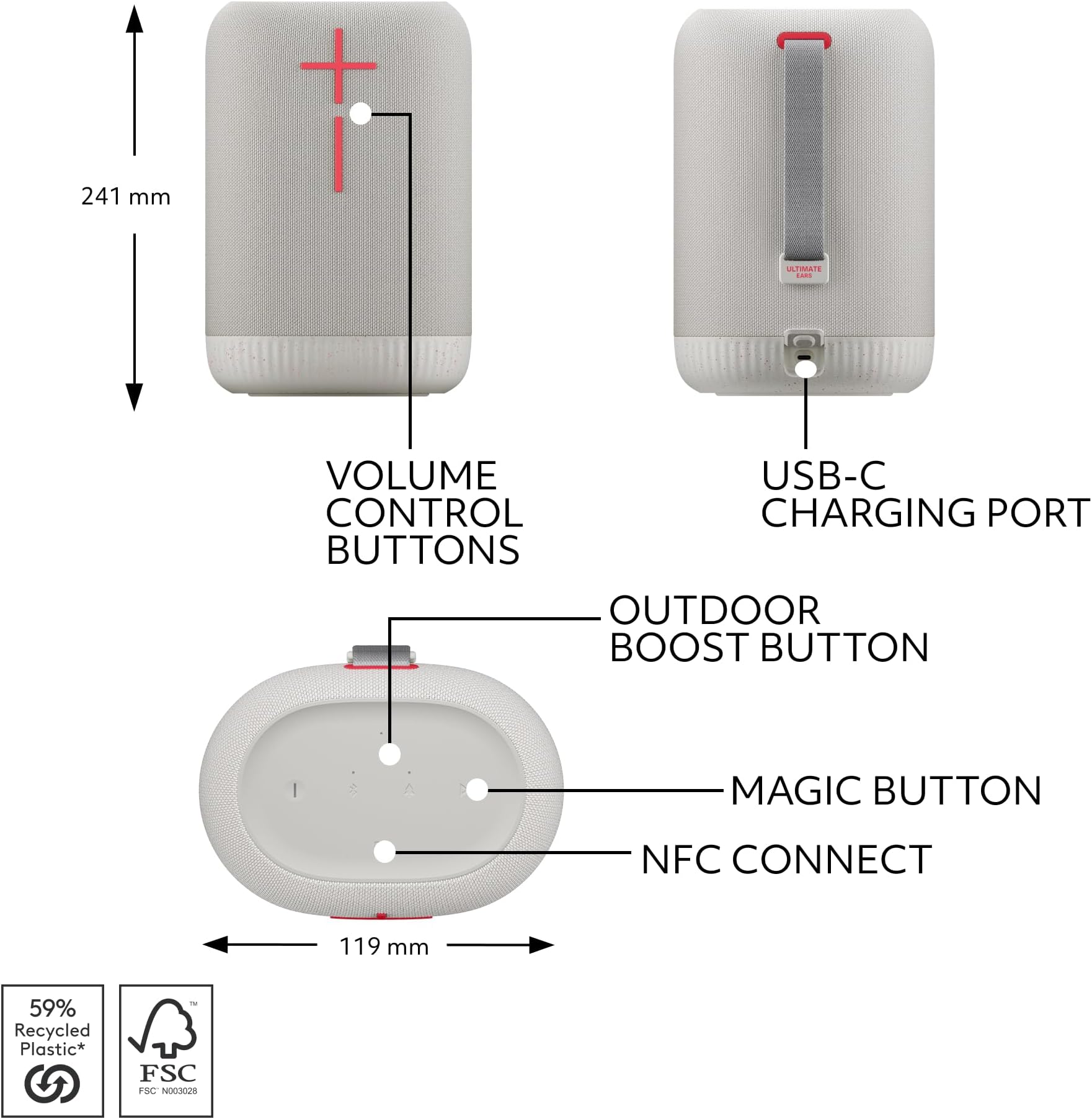Ultimate Ears EPICBOOM, Portable Waterproof Bluetooth Speaker, Big Bass, 360-Degree Sound, Wireless Speakers, IP67, 17Hr Battery, USB C - White