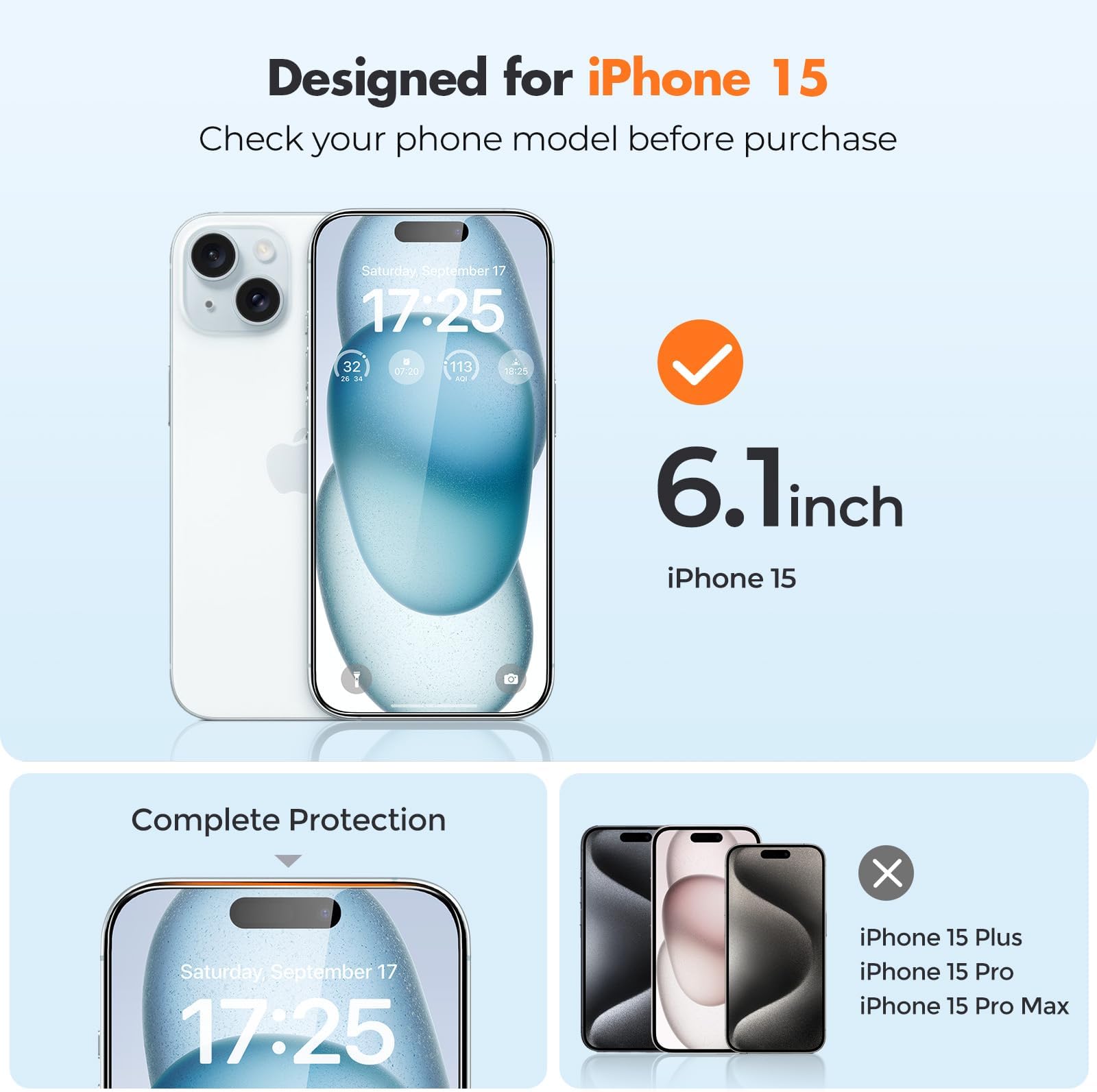 - התאמה מושלמת ומתאים לכיסוי: עוצב עבור אייפון 15 6.1 אינץ' (2023). מגנים אלה קטנים מעט יותר מהמסך כדי למנוע הפרעה ל-Face ID או למצלמה הקדמית, מה שמבטיח תאימות לכיסוי ומניעת בועות.