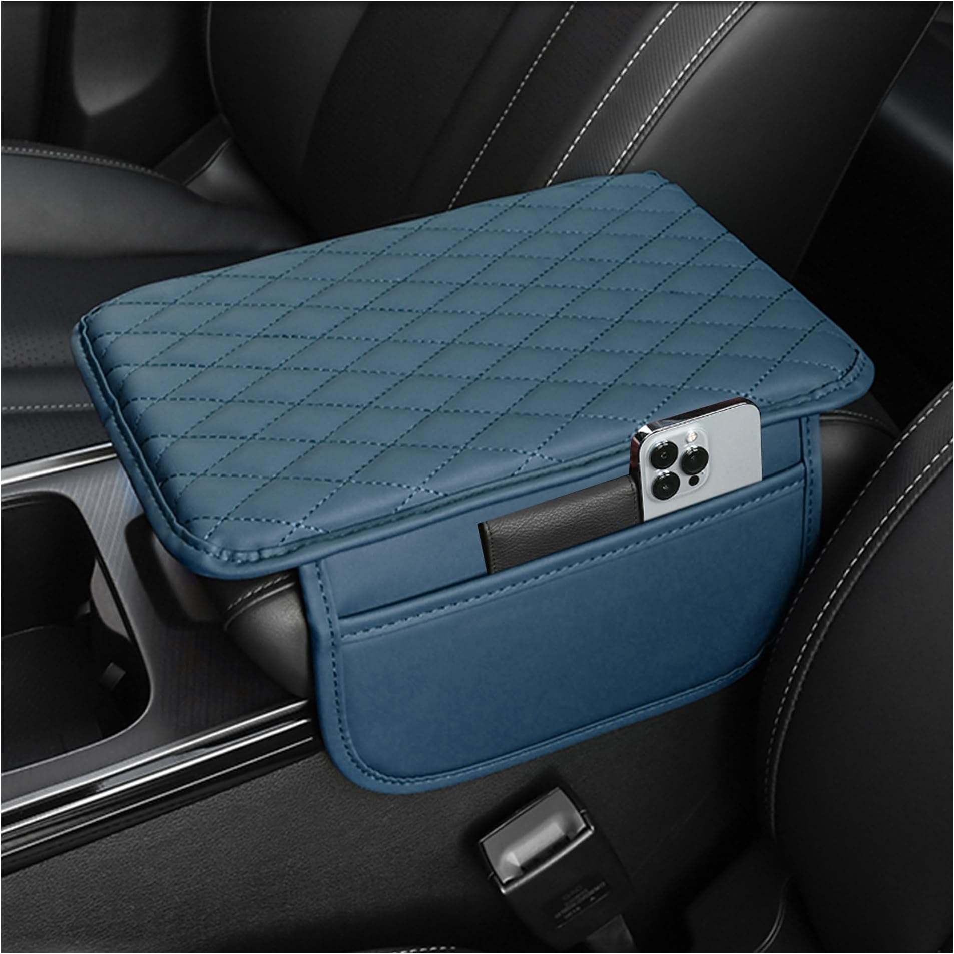 כיסוי קונסולת מרכז רכב משודרג Stacool, כיסוי משענת יד לרכב מעור מיקרופייבר עם 2 שקיות אחסון, קופסת אחסון משענת יד לרכב אוניברסלית אביזרי פנים לרוב המכוניות (כחול)