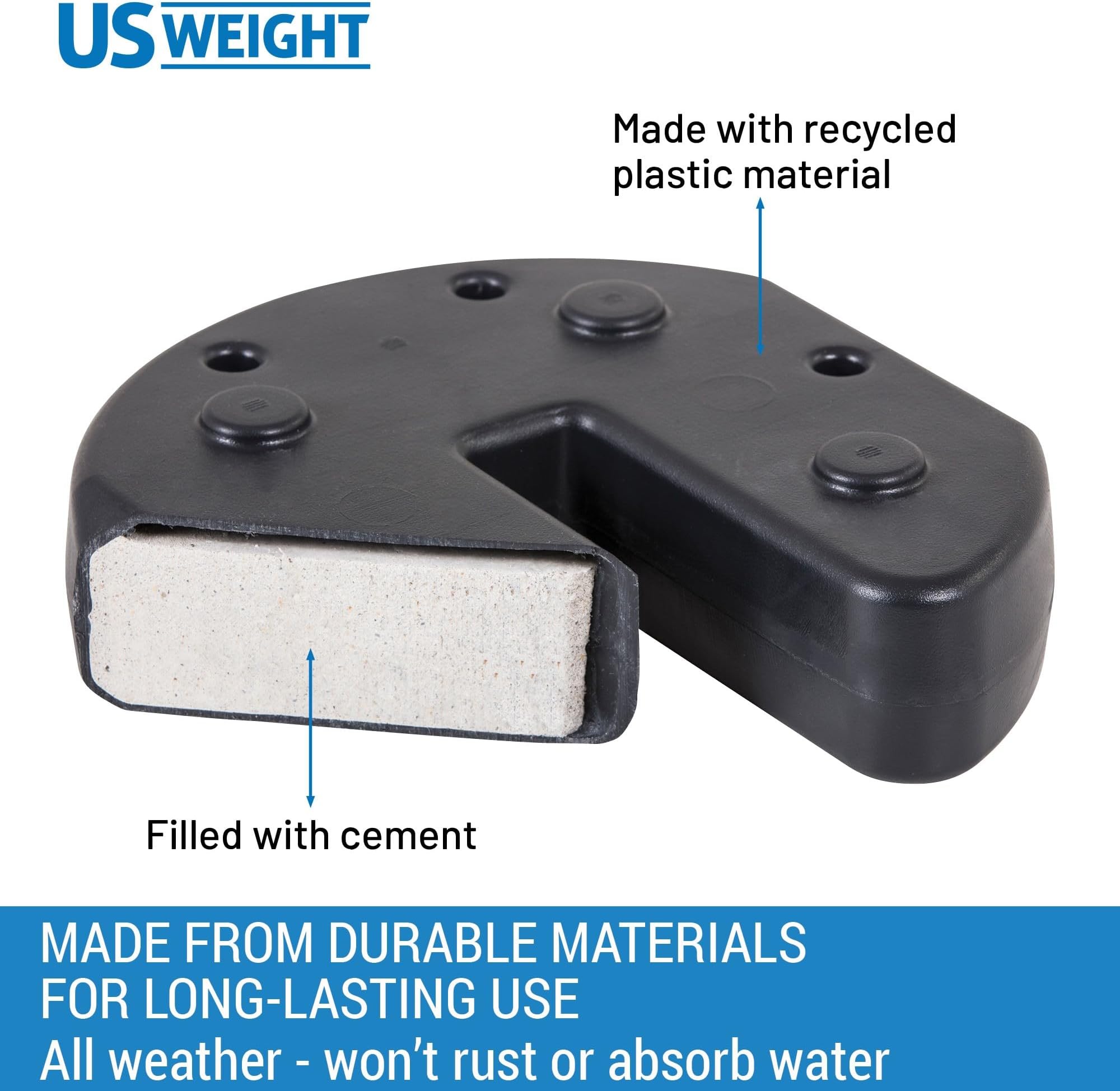 - משקולות אלו, המיוצרות בארה"ב מפלסטיק איכותי, הן חזקות ומעשיות כאחד, ומספקות פתרון אמין לאירועים בחוץ.
