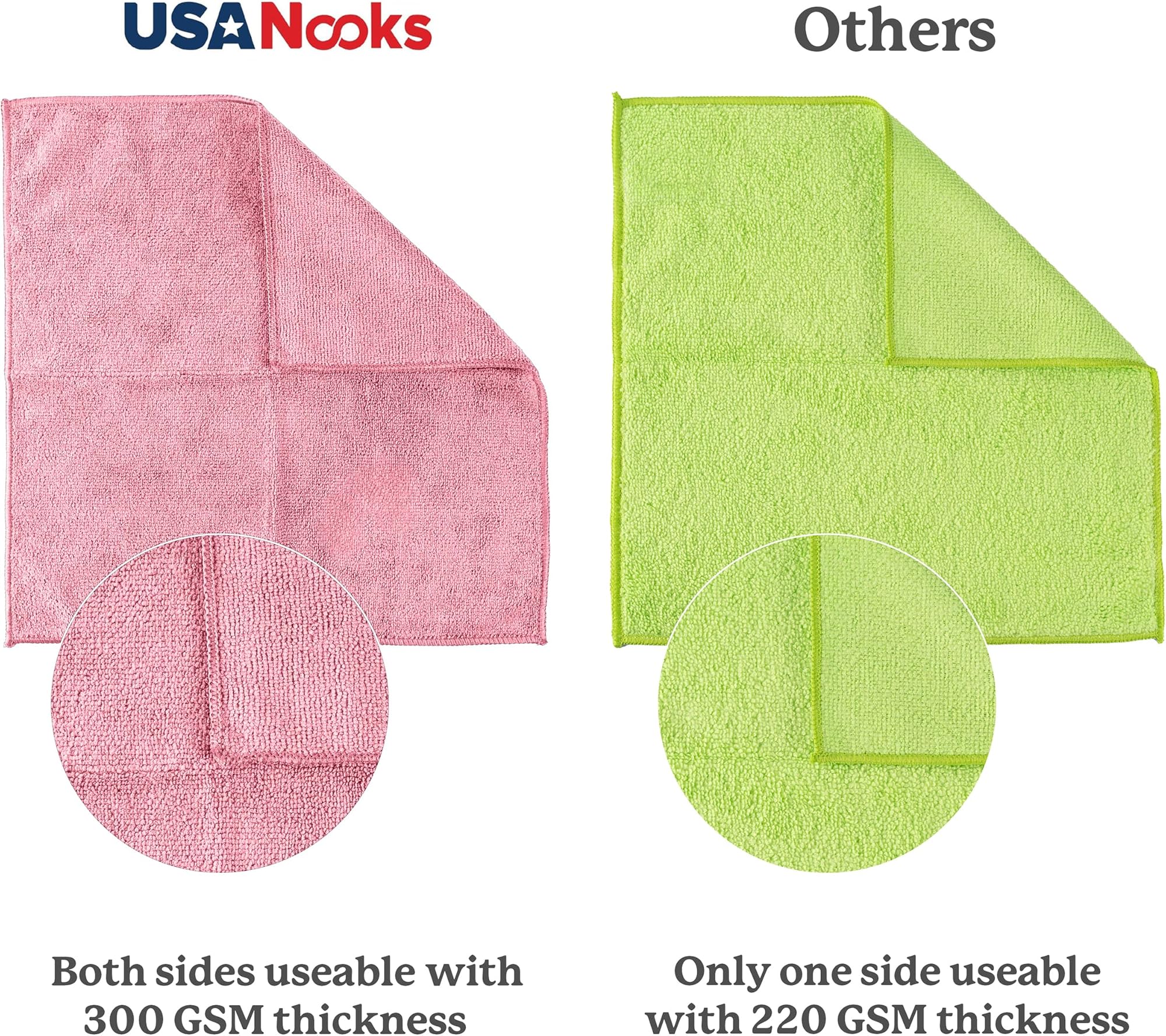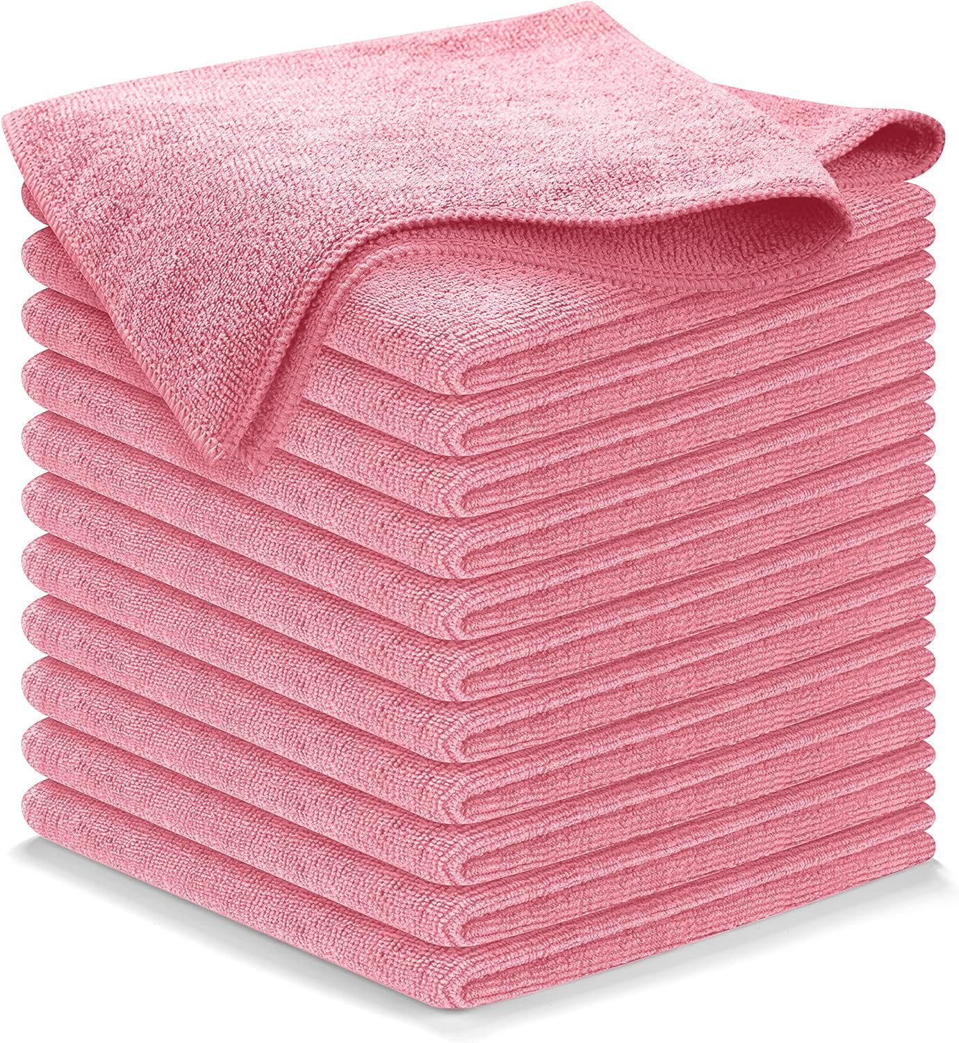 מטלית ניקוי מיקרופייבר USANOOKS ורודה בהירה - 12 יחידות 12.5 אינץ' x 12.5 אינץ' - ביצועים גבוהים - 1200 כביסות, מגבות סופגות במיוחד שוזרות לכלוך ונוזל לברק מראות ללא פסים - מטלית שטיפת רכב