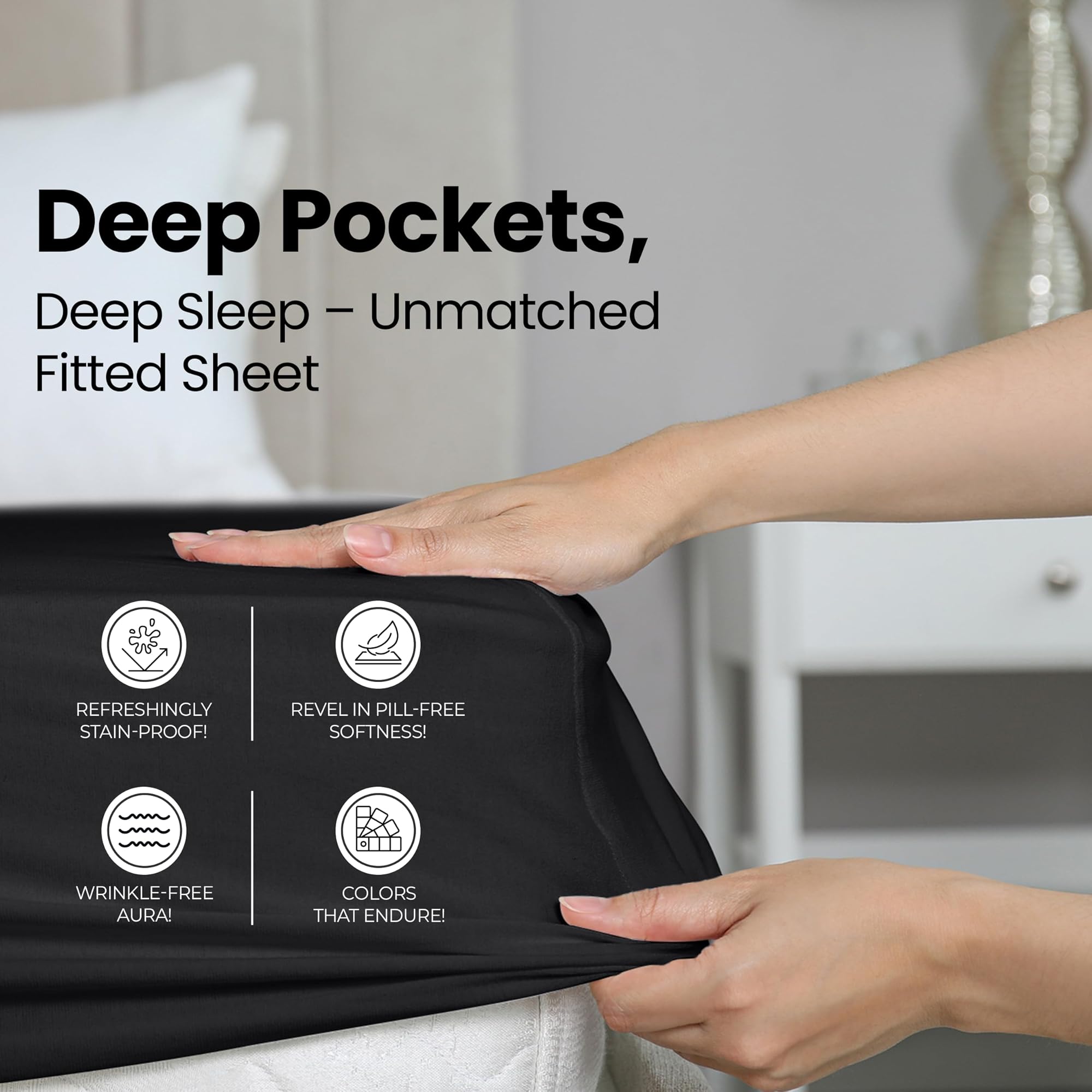 סדין מצעים זוגי Utopia Bedding - סדין תחתון - כיס עמוק - מיקרופייבר רך - עמיד בפני הצטמקות ודהייה - קל לטיפול - סדין אחד בלבד (שחור)