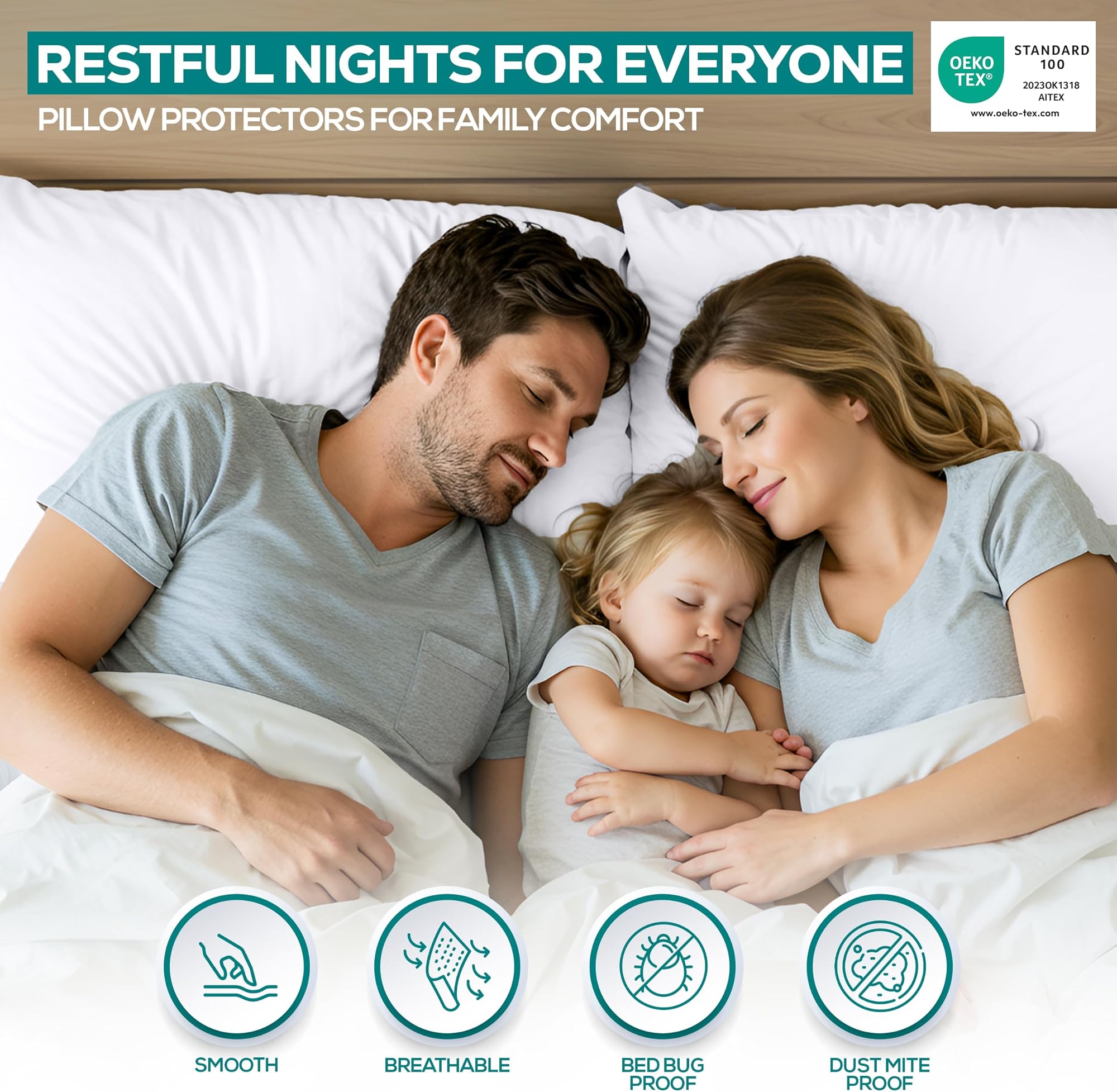 מגני כריות עמידים למים 100% של Utopia Bedding עם רוכסן בגודל סטנדרטי (סט של 2), כיסויי כריות עם רוכסן נגד פשפשים וקרדית אבק, כיסויים לכריות, לבן