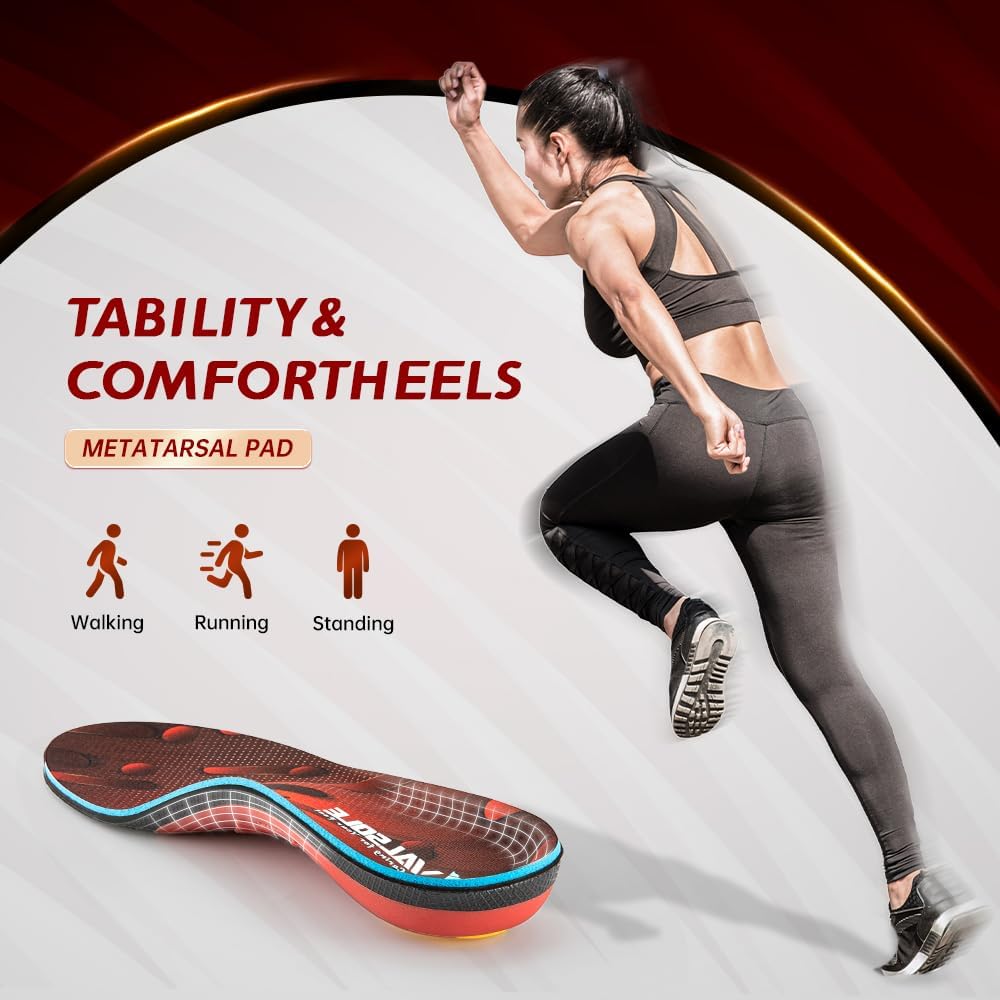 מדרסים לתמיכה כבדה של VALSOLE להקלה על כאבים - מדרסים לתמיכה בקשת גבוהה של כף הרגל פלנטרית לגברים ונשים, מדרסים לכף הרגל שטוחה, מדרסים לנעליים לעבודה, סופגים זעזועים בכל צעד (אדום)