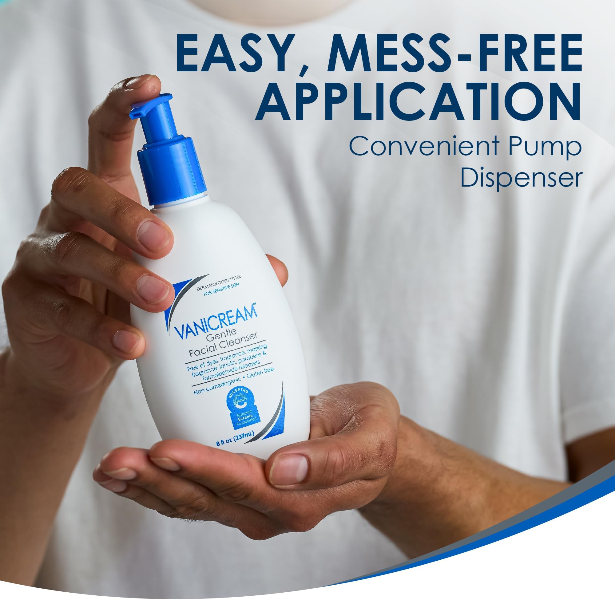 סבון פנים עדין של Vanicream עם משאבה - 237 מ"ל - מיוצר ללא גירויים נפוצים לעור רגיש