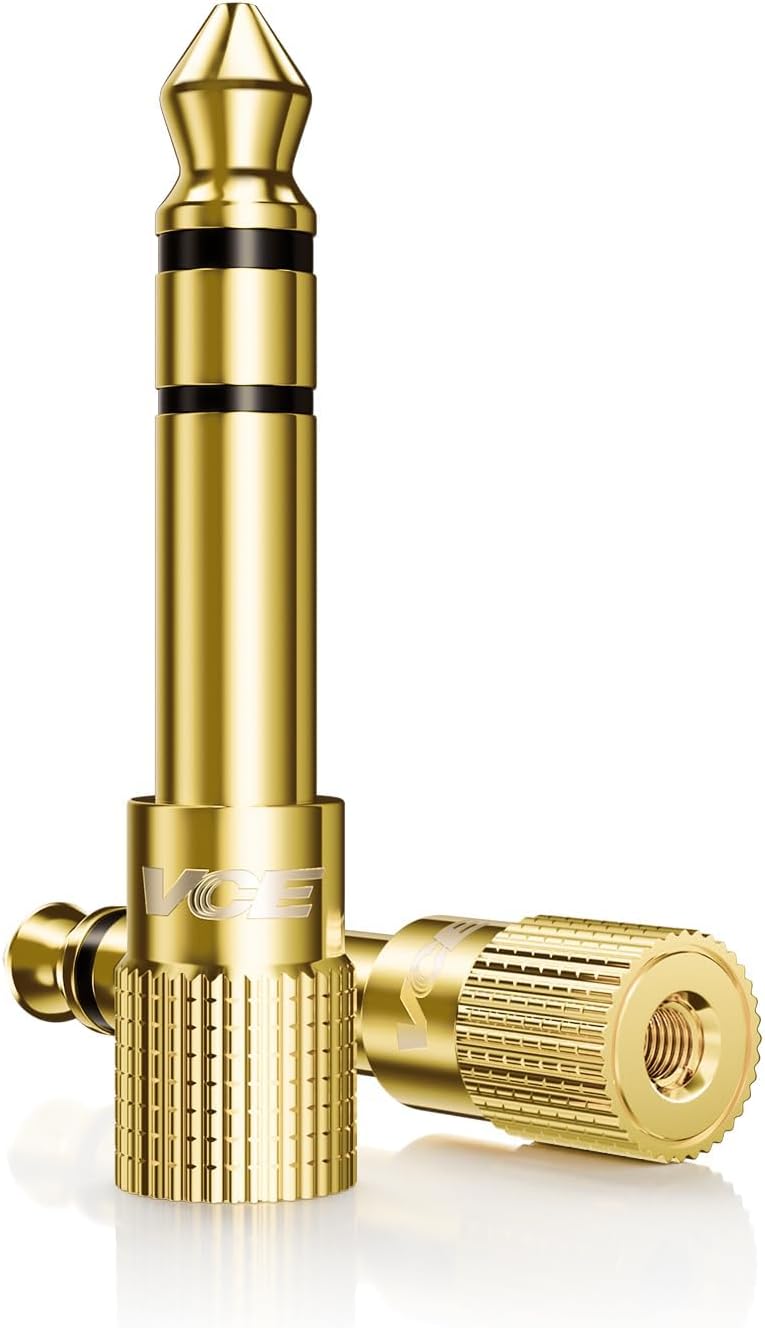 מתאם שקע שמע סטריאו VCE 6.35 מ"מ (1/4 אינץ') ל-3.5 מ"מ (1/8 אינץ') נקבה לכבל Aux, מגבר גיטרה, אוזניות, חבילה של 2