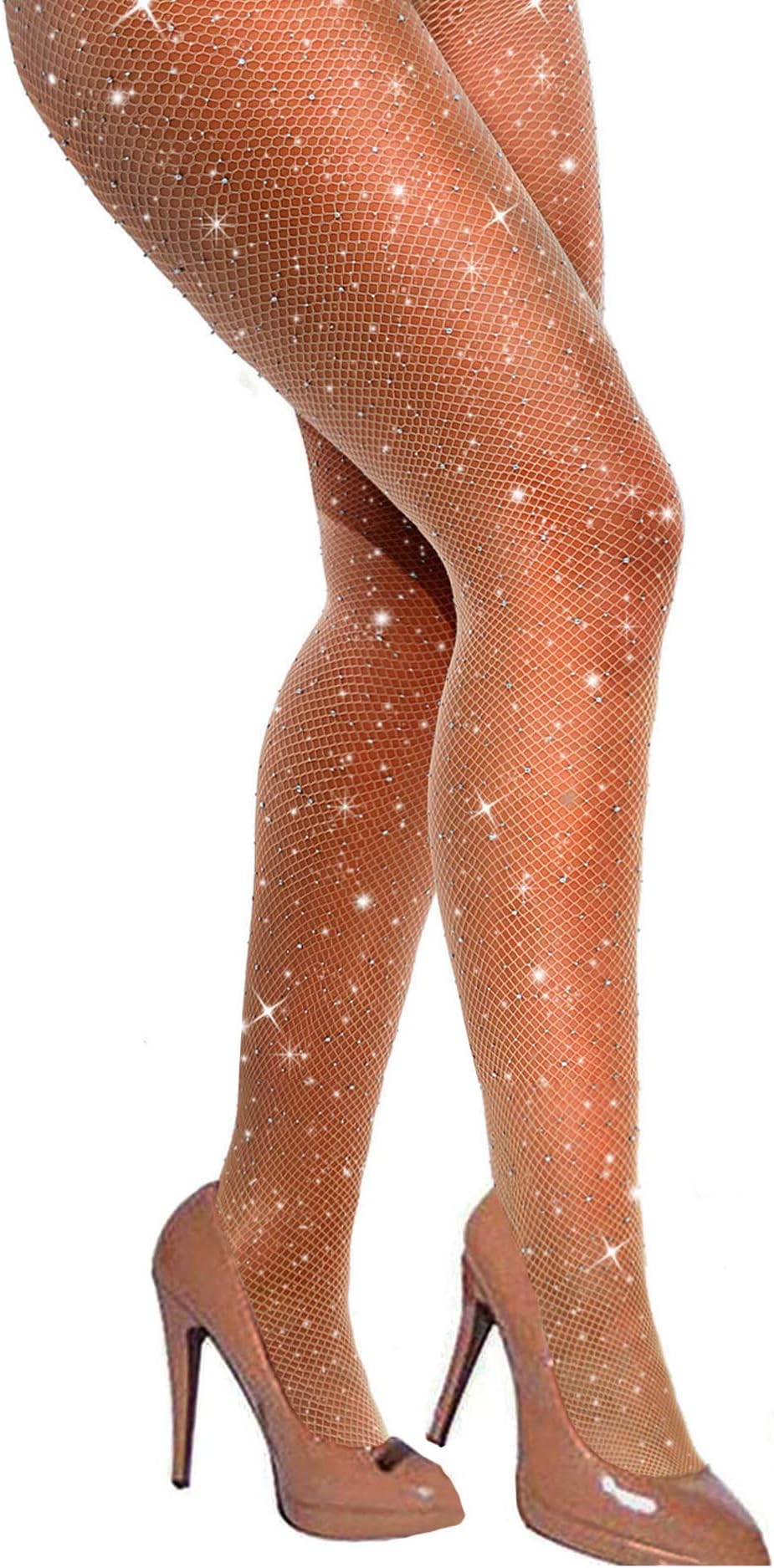 גרביוני רשת עם ריינסטון לנשים, טייצים נוצצים, רשת נצנצים