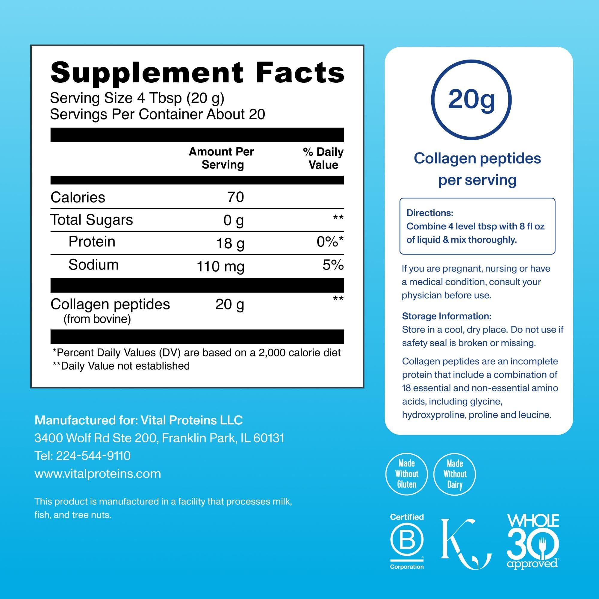 - פורמולה: תיהנו מתוסף מושלם לשגרת בריאות, פפטידים של קולגן של Vital Proteins מיוצרים ללא גלוטן או מוצרי חלב.
