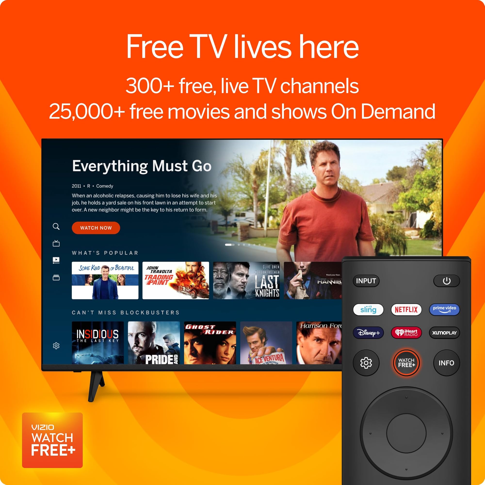 - מערכת ההפעלה VIZIO המובנית מאפשרת לכם גישה מיידית לכל האפליקציות המועדפות עליכם ועוד. תיהנו ממאות ערוצים בחינם ואלפי כותרים לפי דרישה בחינם עם אפליקציית WatchFree+ המובנית.