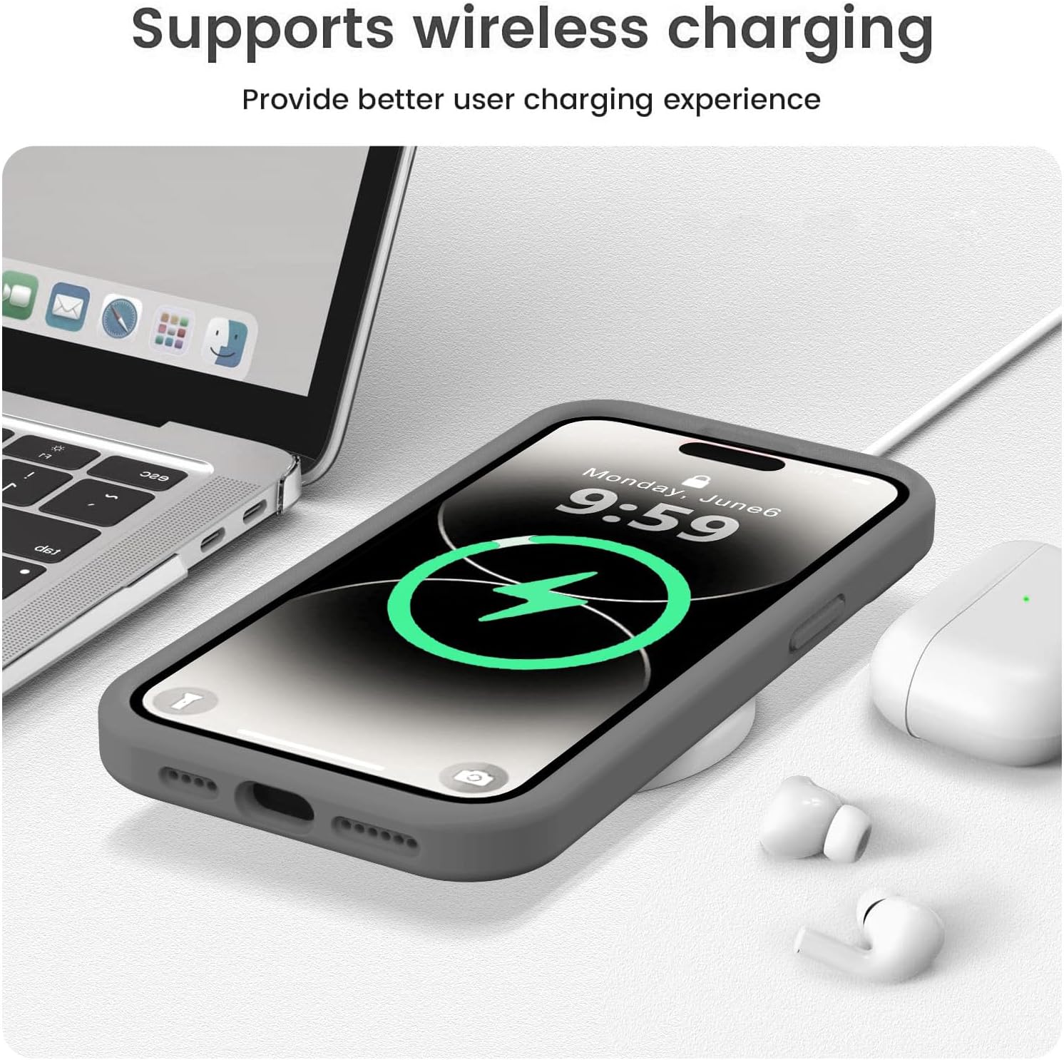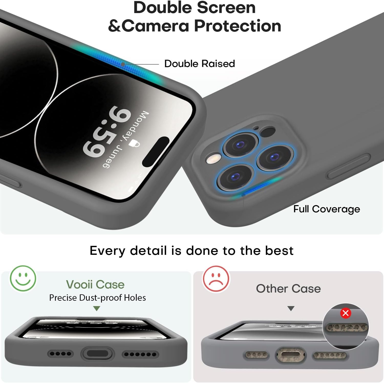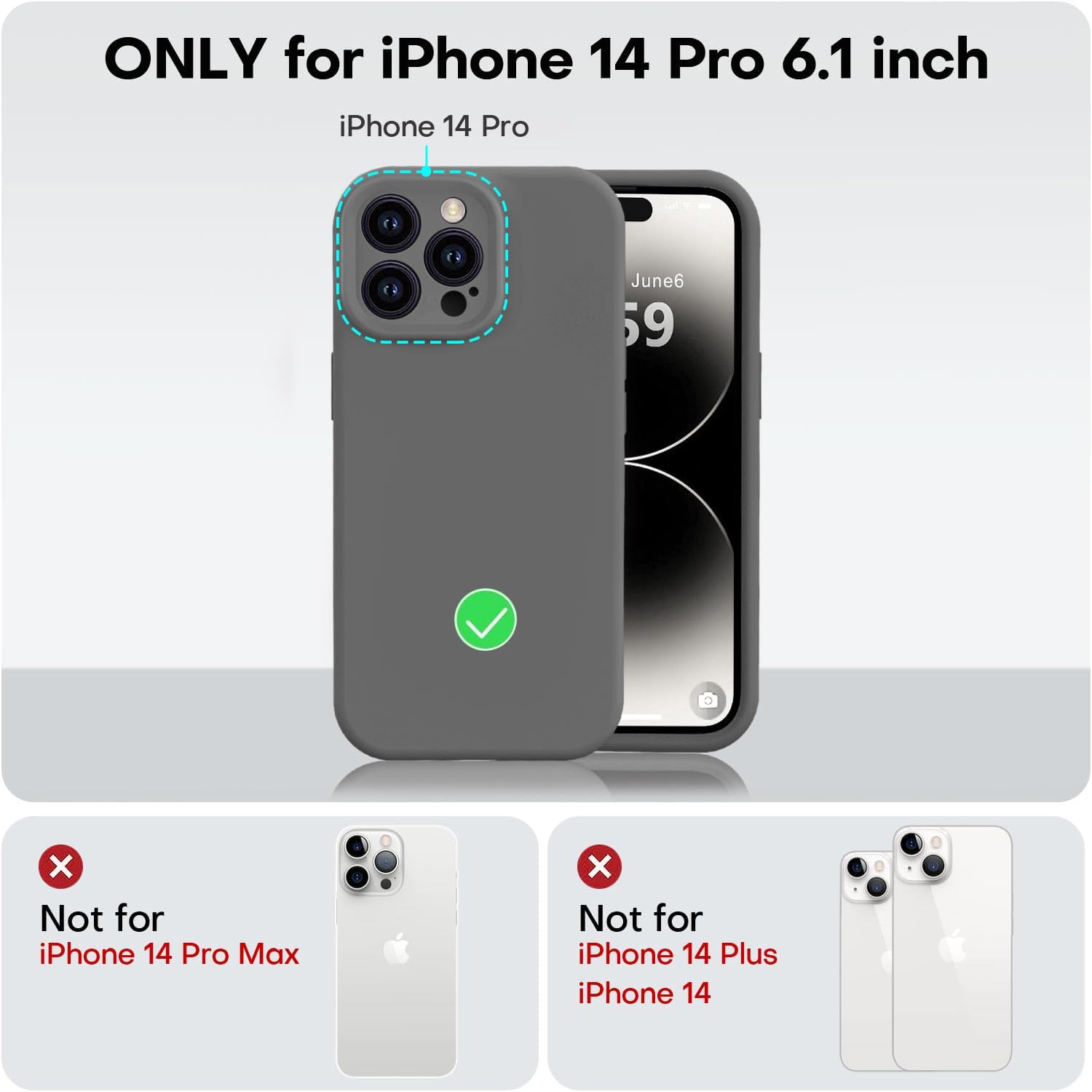כיסוי Vooii תואם לאייפון 14 פרו, סיליקון נוזלי לשדרוג [הגנה על המצלמה] [בטנה רכה נגד שריטות ממיקרופייבר] כיסוי טלפון עמיד בפני זעזועים לאייפון 14 פרו 6.1 אינץ' - אפור כהה