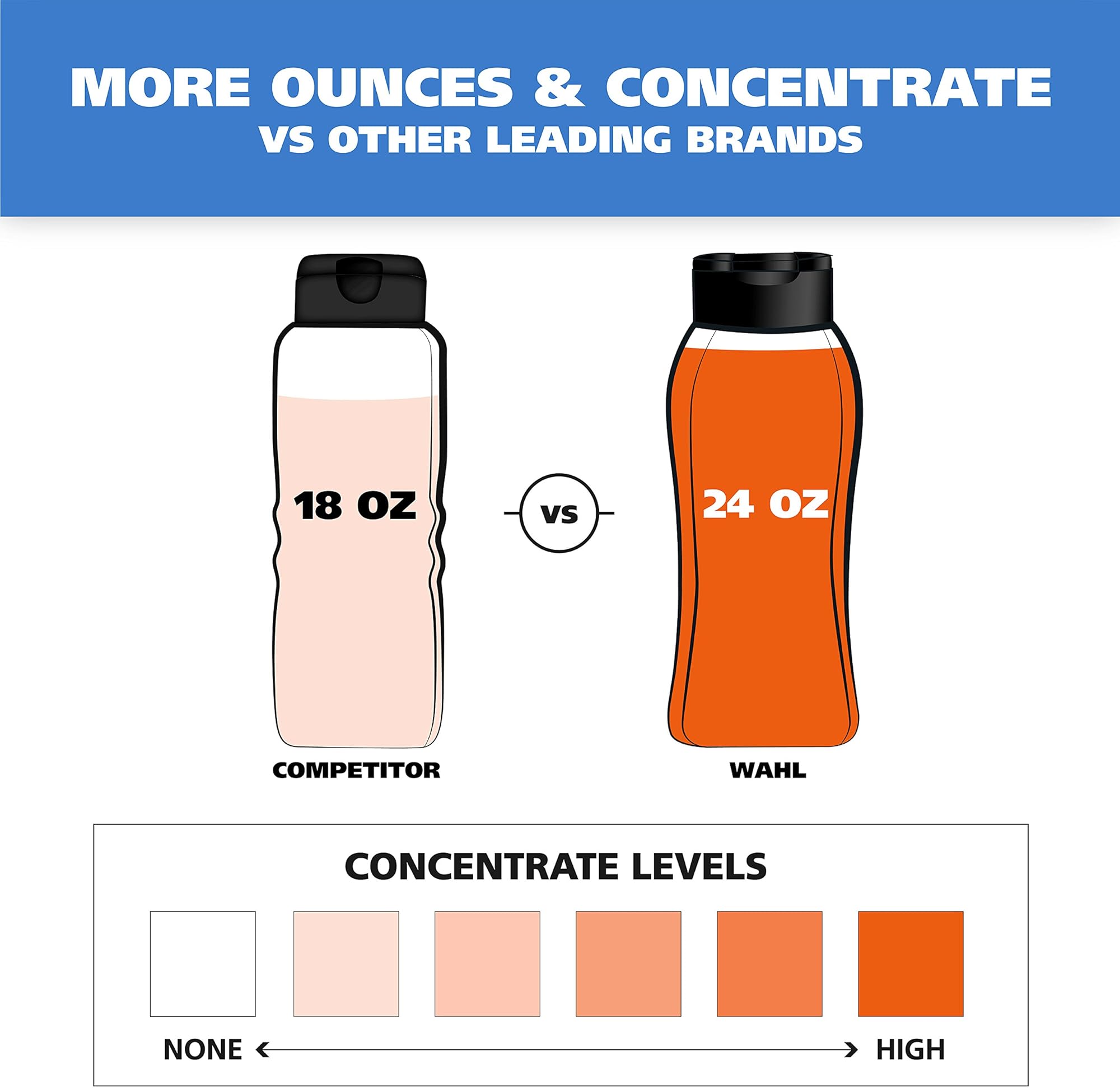 השמפו שלנו מרוכז, מה שאומר שקצת מספיק מספיק! הקפידו לשטוף היטב את הכלב לאחר חפיפת השמפו כדי לא להשאיר שאריות שמפו. בנוסף, חשוב תמיד לסרק ולייבש את פרוות חיית המחמד שלכם; השארת הכלב עם פרווה לחה במשך שעות עלולה להוביל לסיכון פוטנציאלי לכלבים בעלי עור רגיש. שמפו פורמולת שיבולת שועל של Wahl's מכיל ניחוח קוקוס-ליים וורבנה ששומר על חיית המחמד שלכם בעלת ריח נהדר! השמפו שלנו עוזר לנקות, לחות ולהגן על עורו העדין של הגור שלכם בעדינות על ידי מתן הקלה בגירוד. הקצף העשיר עוזר לנקות פרווה מלוכלכת ושאריות סביבתיות אחרות. מכיוון שהשמפו שלנו מתנקה בקלות, הוא משאיר את פרוות הכלב שלכם נקייה, משיי וחלקה. המרכיבים הצמחיים שלנו הופכים את השמפו שלנו לבחירה עבור בעלים שרוצים להימנע מכימיקלים קשים עבור הכלב שלהם ועבור עצמם. השמפו שלנו נטול PEG-80, נטול אלכוהול, נטול פרבנים ובעל רמת pH מאוזנת. גודל 24 אונקיות והפורמולה המרוכזת שלנו מאפשרים עד 70% יותר אמבטיות בהשוואה למותגים מובילים אחרים. למרות שאין כימיקלים מזיקים במוצרי חיות המחמד שלנו, חלק מחיות המחמד רגישות לשמנים צמחיים מסוימים המשמשים במוצרים שלנו. וואהל ממליצה בחום להתייעץ עם הווטרינר שלכם ולבצע בדיקה נקודתית קטנה על חיית המחמד שלכם לפחות 24 שעות לפני השימוש בכל מוצר חדש. וואהל משרתת וטרינרים ומטפחים מקצועיים כבר למעלה מ-50 שנה. כחברה של אוהבי בעלי חיים, אנו מאמינים שחיית המחמד שלכם ראויה לטוב ביותר.