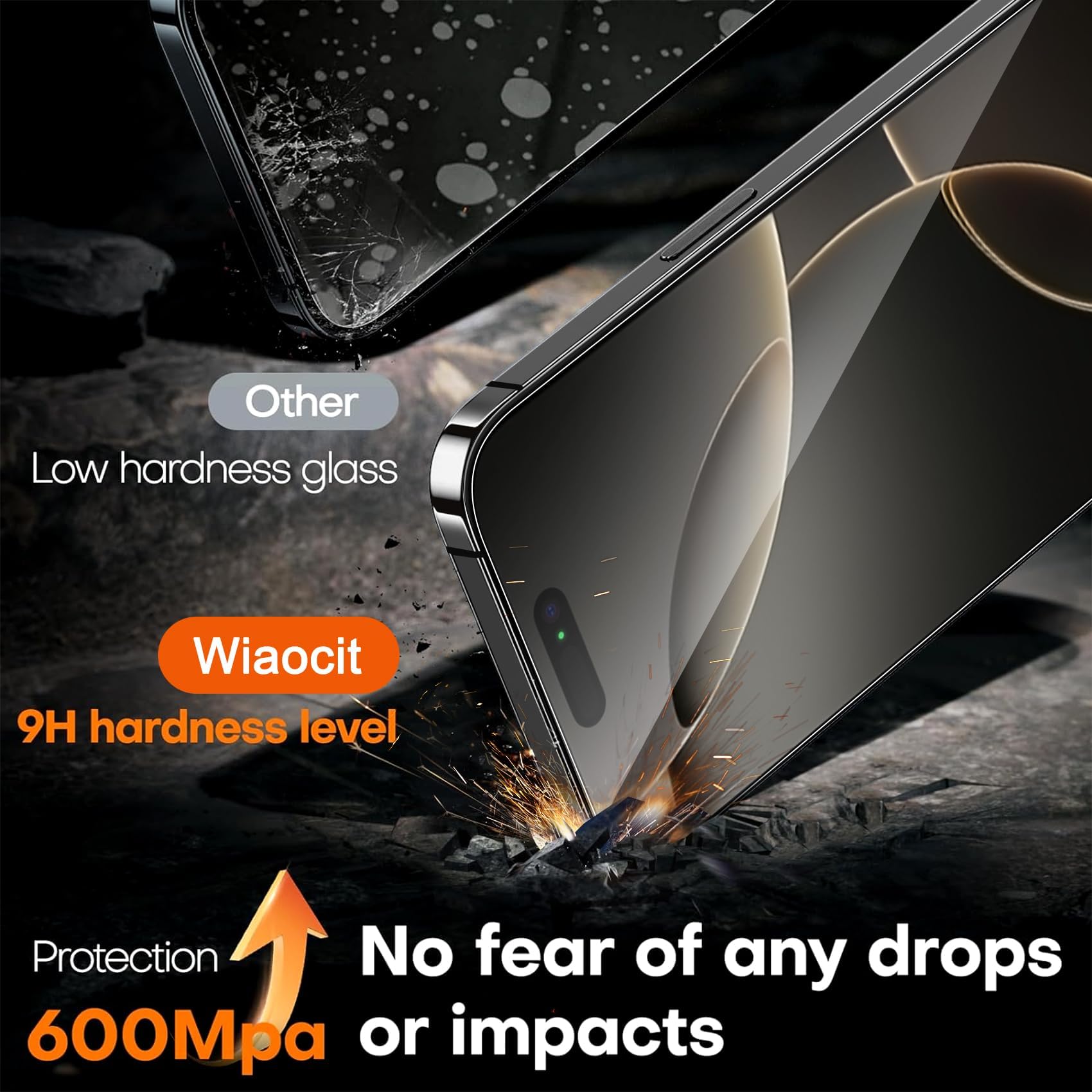 מגני מסך זכוכית מחוסמת Wiaocit לאייפון 16 פרו מקס עם 3 מגני עדשת מצלמה, קשיות 9H, ללא בועות, מתאים לכיסוי