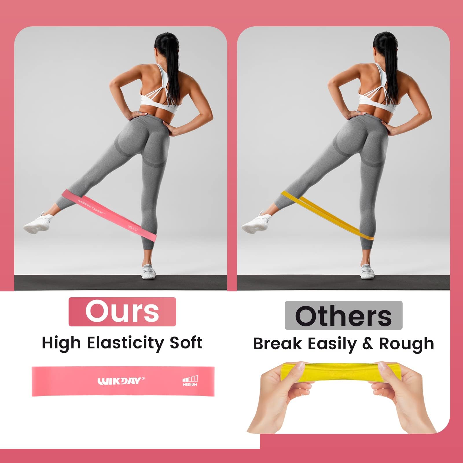 WIKDAY גומיות התנגדות לאימון לולאות, סט גומיות אימון לגברים ונשים, מתיחות גוף, אימון, אימון ביתי, פיזיותרפיה, רגליים ישבנות, סט של 5 (ורוד)