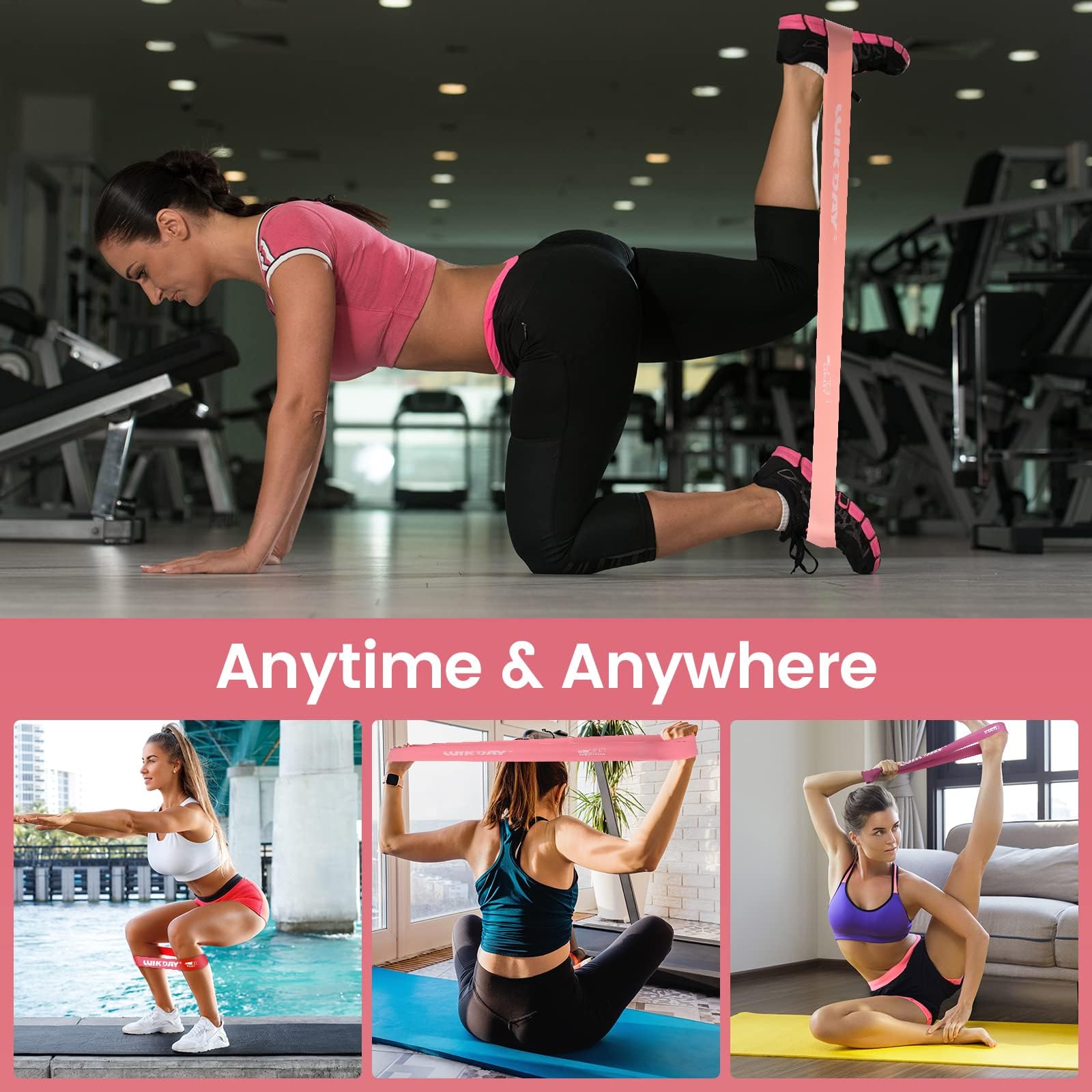 גומיות התנגדות של WIKDAY, ניתן לבצע תרגילי גומיות התנגדות בכל זמן ובכל מקום, קלות לנשיאה, בבית, בחדר כושר, בחוץ, במשרד או אפילו בדרכים; גומיות שיקום ניידות ואימון הכל באחד.