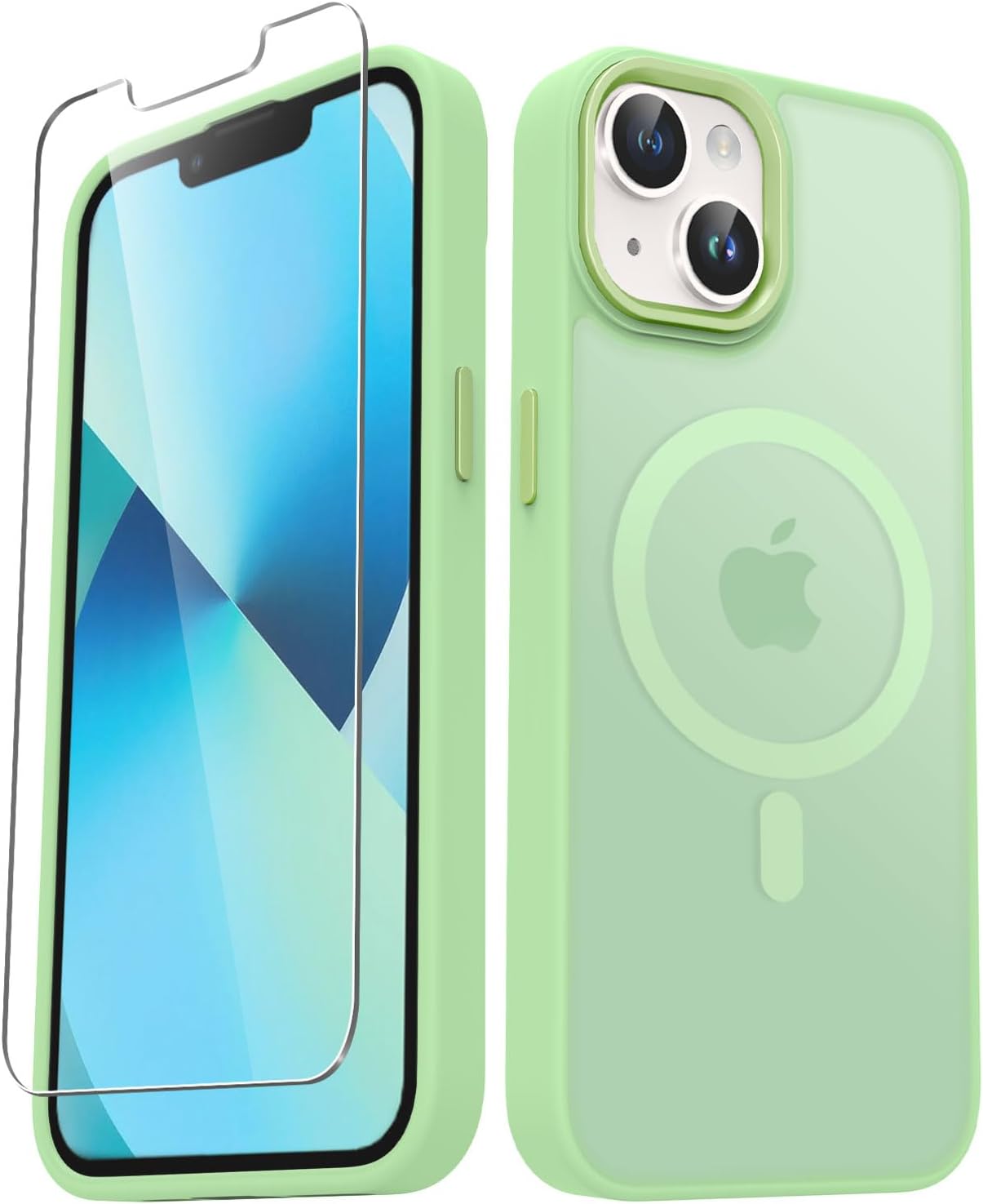 כיסוי YENAPOON לאייפון 14 פלוס, כיסוי מגנטי מט לטלפון עם מגן מסך אחד, תמיכה ב-Magsafe, כיסוי מגן שקוף חלבי דק ועמיד בפני זעזועים לאייפון 14 פלוס 6.7 אינץ', ירוק מנטה