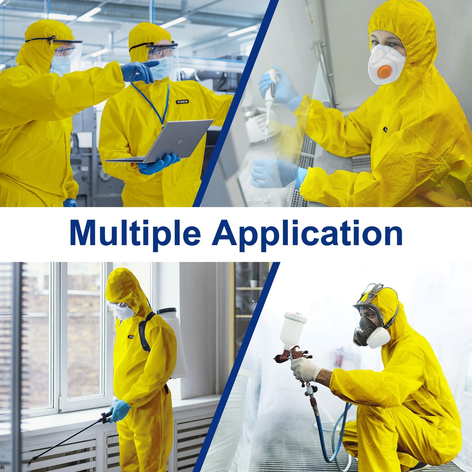 סרבל חד פעמי לחומרים מסוכנים של YIBER | סרבל וחליפת צבע מלאה עמידה לעומס מלא ב-7 גדלים עם מפרטים מרובים עם ברדס - נושם ועמיד במים - גדול, צהוב, 1