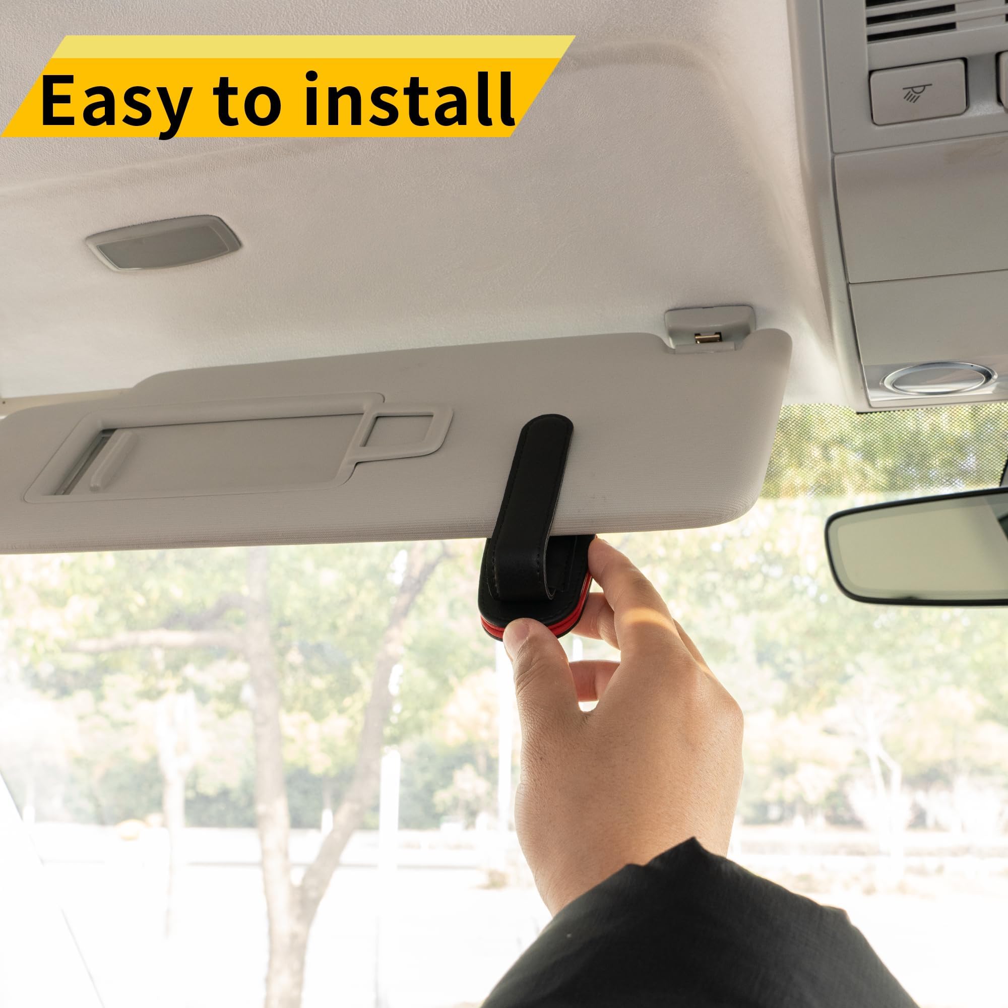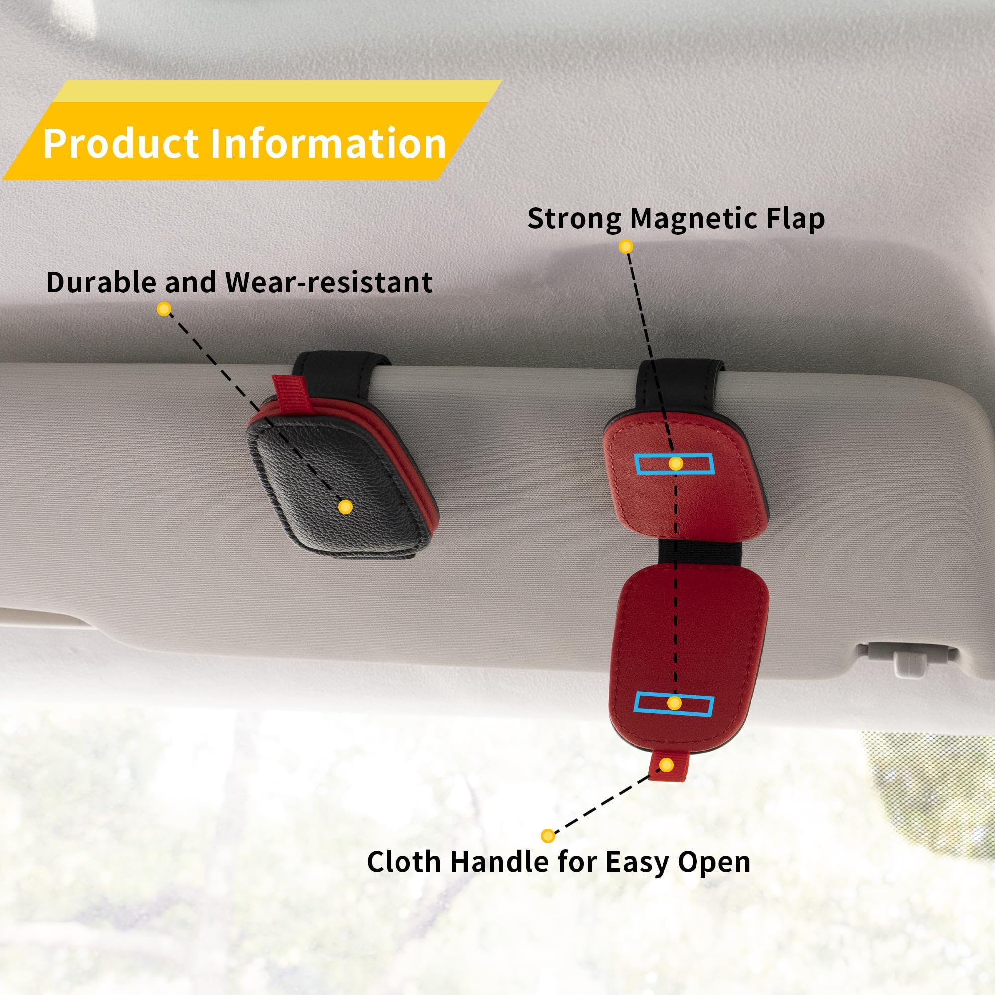 מחזיק משקפי שמש יואיאר לרכב, מחזיק משקפי שמש מגנטי מעור ותפס לכרטיסי כרטיס, אביזרים למגן שמש לרכב, 2 חבילות (שחור-אדום)