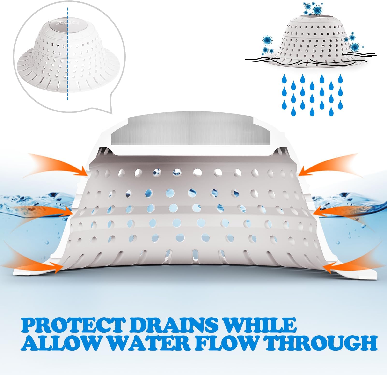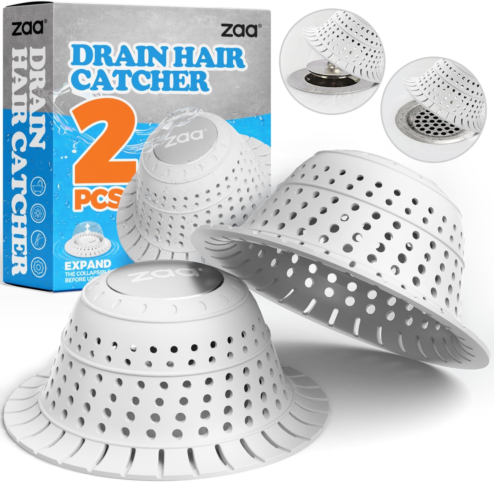 zaa לוכד שיער לניקוז אמבטיה, מגן ניקוז סיליקון מתקפל 2 יחידות לניקוזים קופצים ורגילים של מקלחת, אמבטיה, אמבטיה, חדר אמבטיה, כיור, לבן