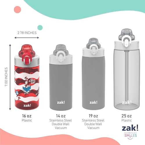 - LIFESTYLE: Staying hydrated is an important part of being healthy! With fun art featuring The Cat in the Hat, Zak Designs' innovative water bottles help make it easy for grown-ups and fun for kids!