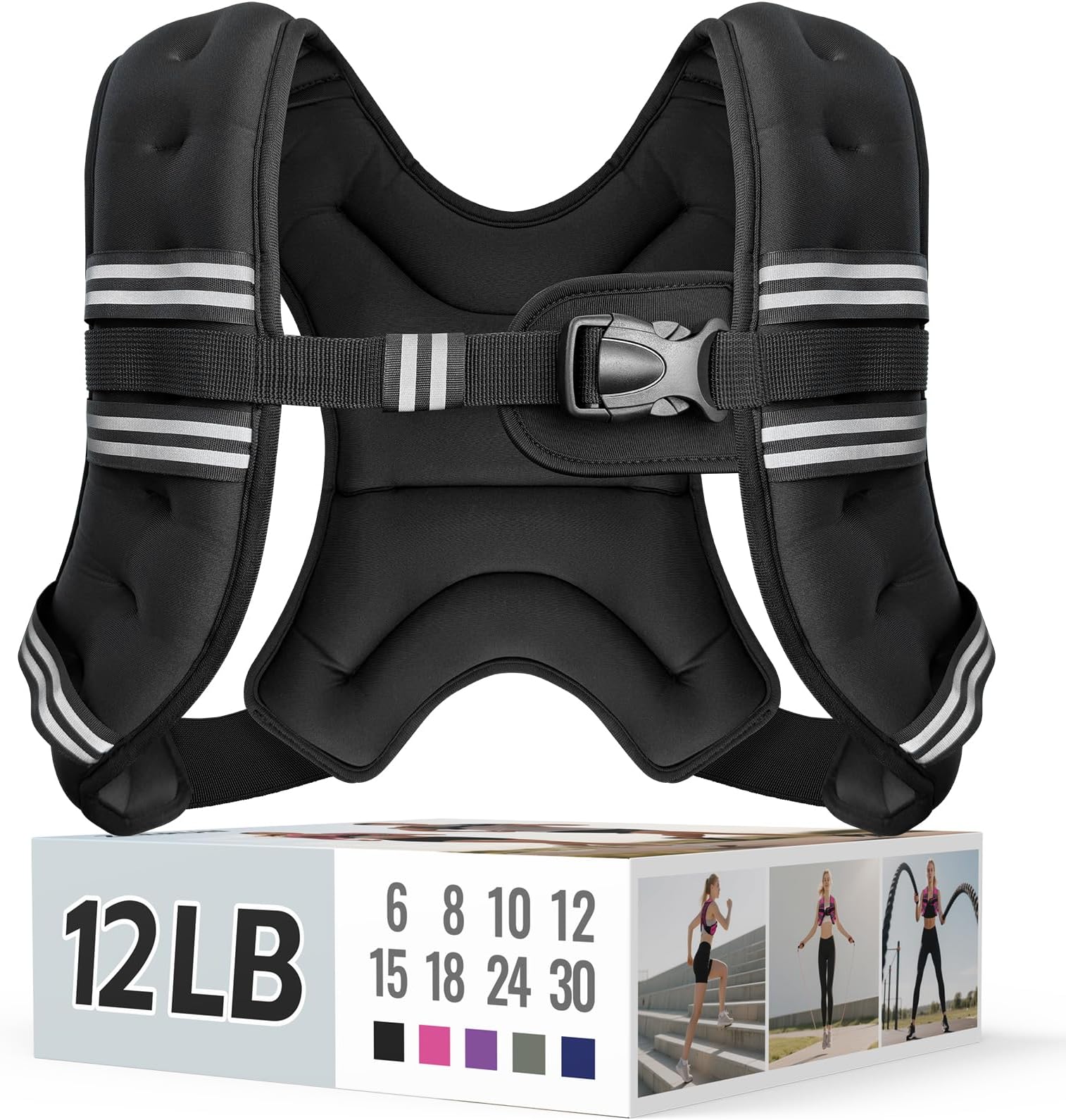 אפוד Zeerun עם משקל לנשים וגברים עם פס מחזיר אור ואבזם מתכוונן, אפוד Rucking נוח ועמיד להליכה, ריצה ואימוני כוח, 12 פאונד - שחור