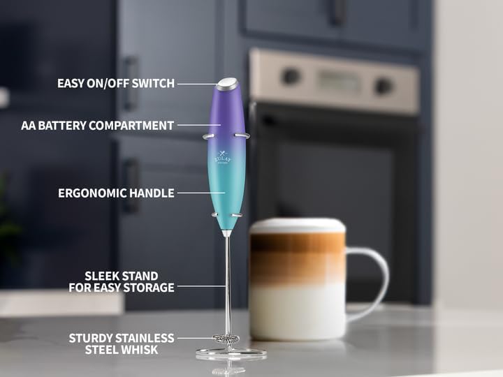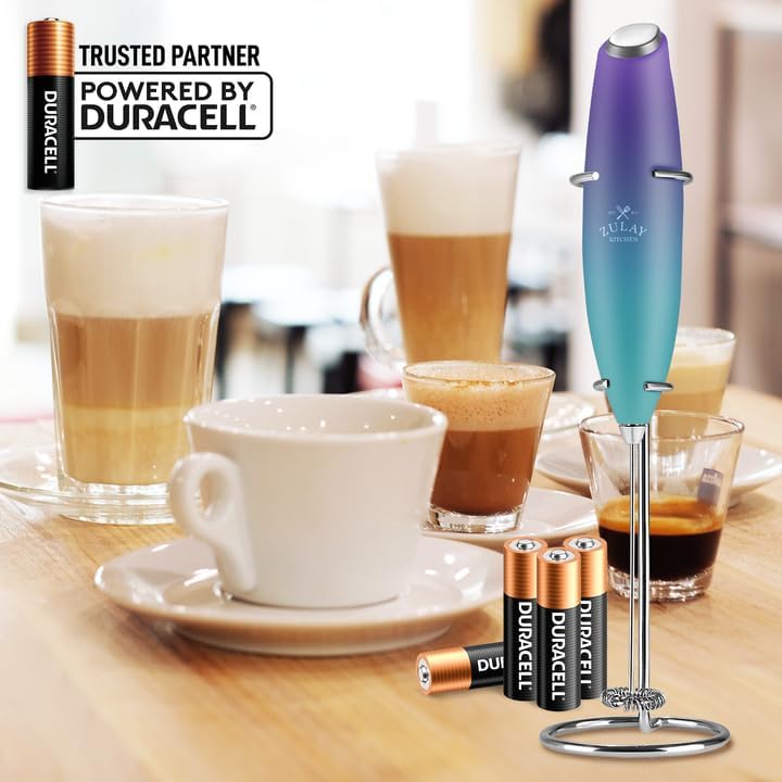 מקציף חלב עוצמתי של Zulay Kitchen עם 4 סוללות AA של Duracell - מיקסר משקאות ידני מהיר במיוחד - מיקסר קצף חשמלי לקפה, לאטה, קפוצ'ינו, מאצ'ה ומקציף חלב